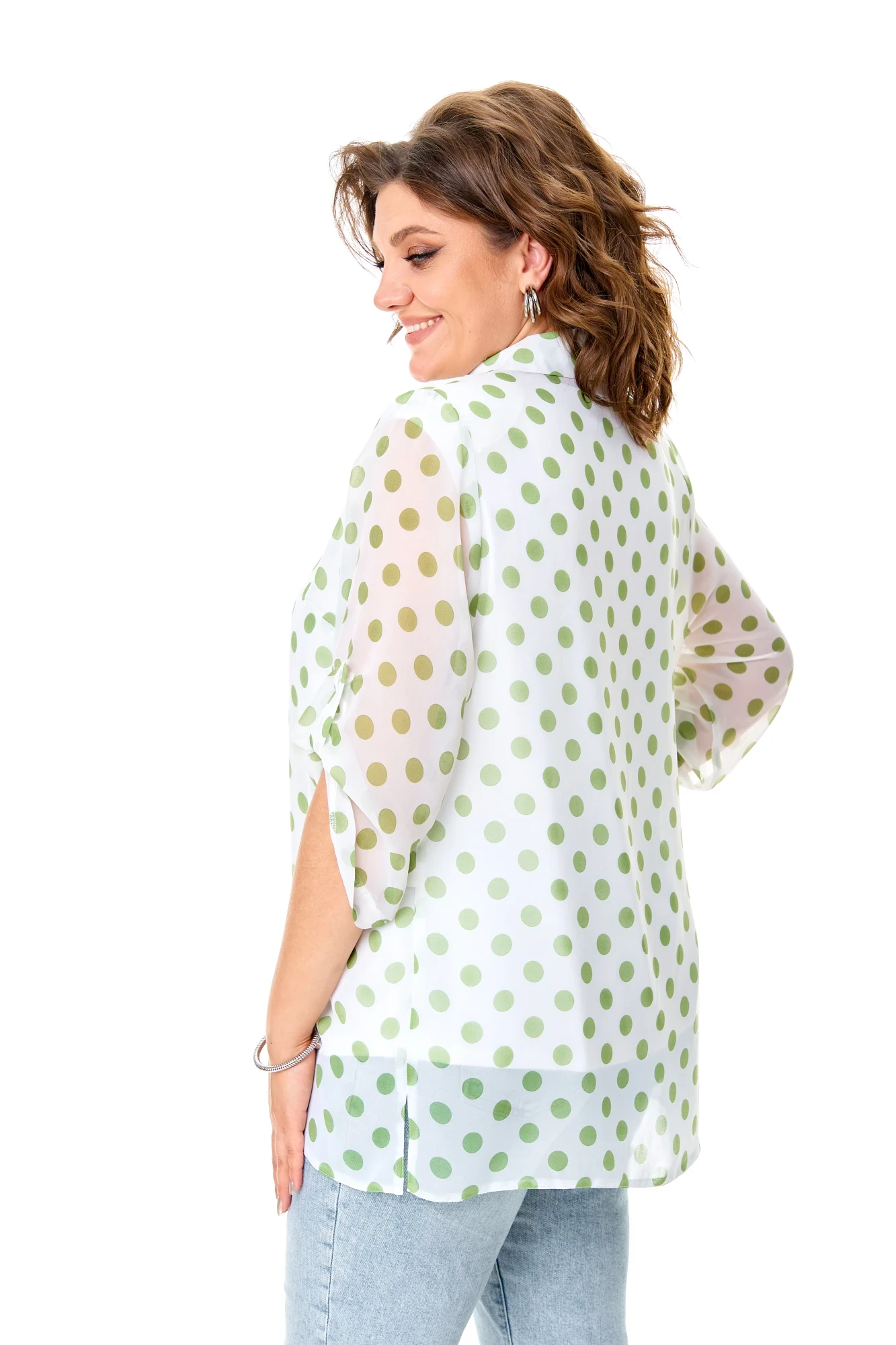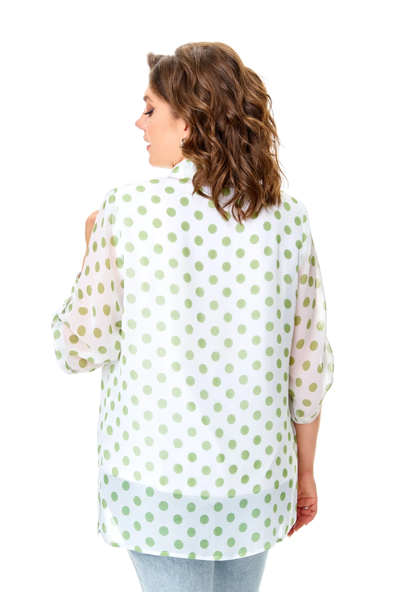 Блузка Abbi 5030 двойка нарядно-повседневный белый с крупным зелеными горохами