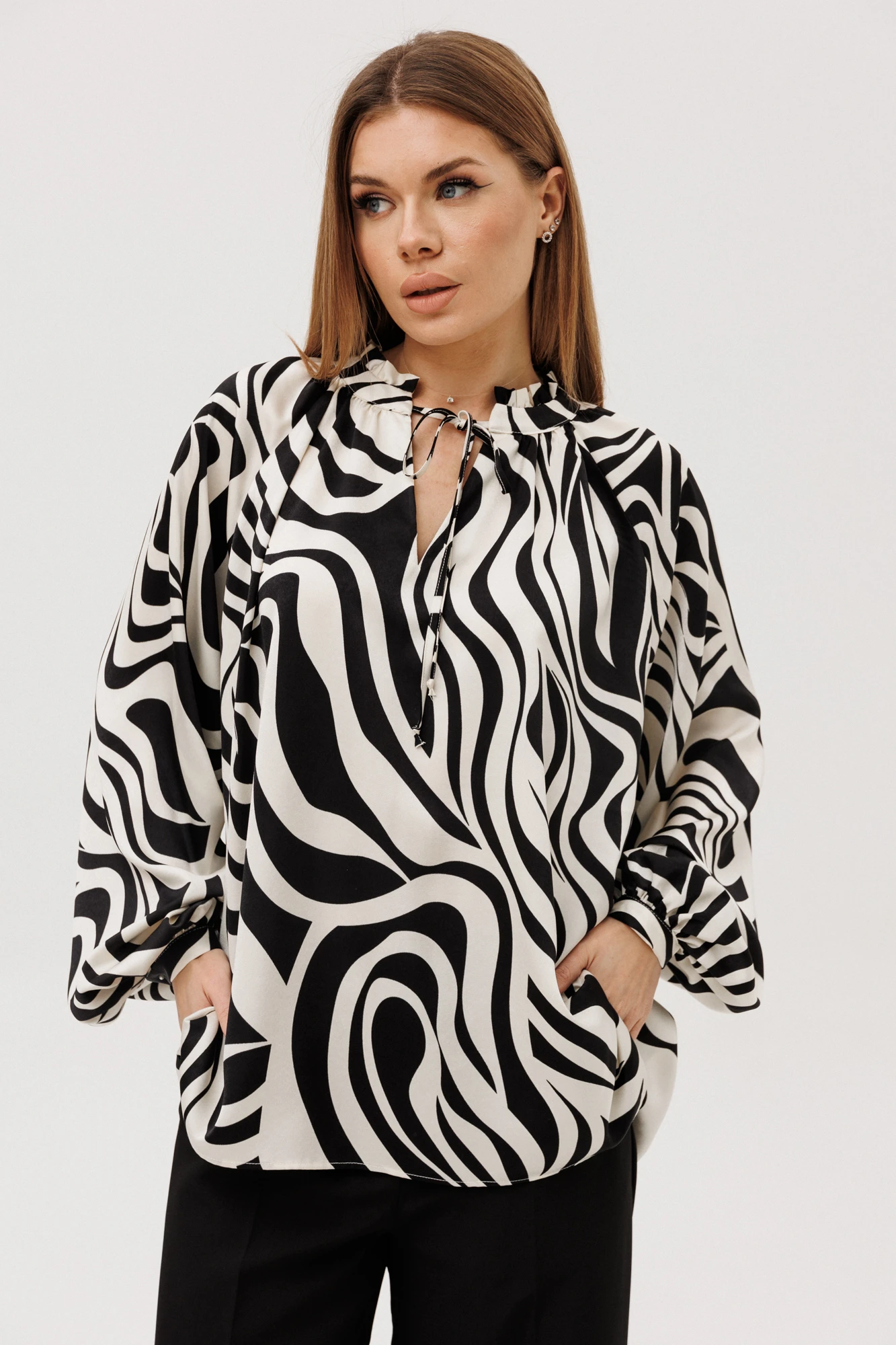 Блузка AmberaStyle 1128-3 черный/белый