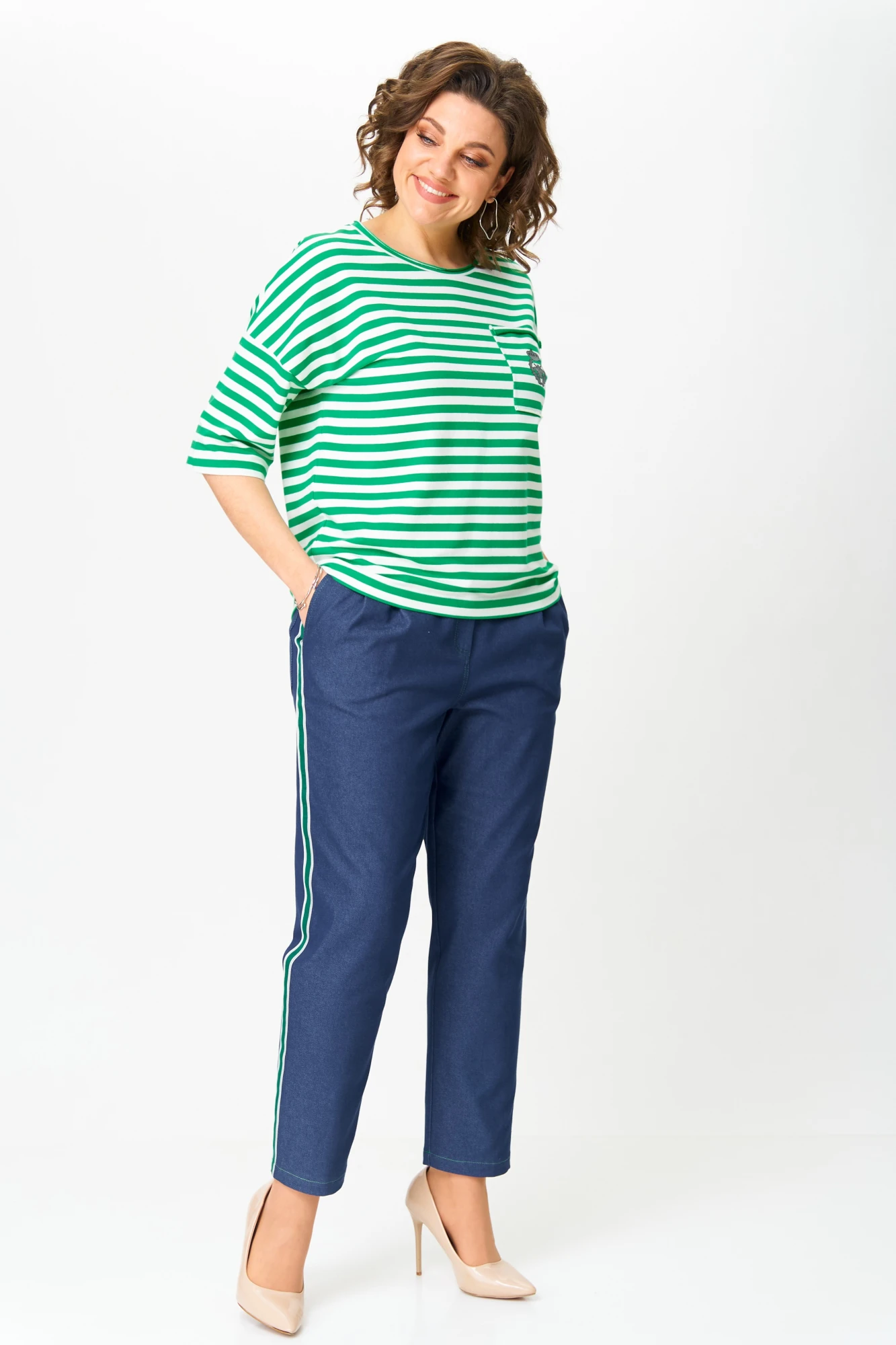 Блузка ANDINA CITY 3011-25 зелёный/белый