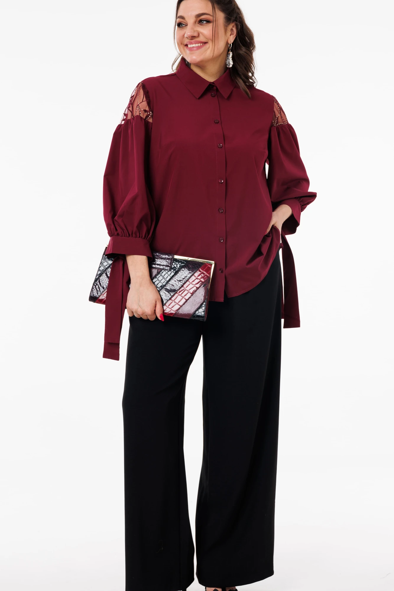 На модели в блузе цвета рубинового вина брюки 1416.1.