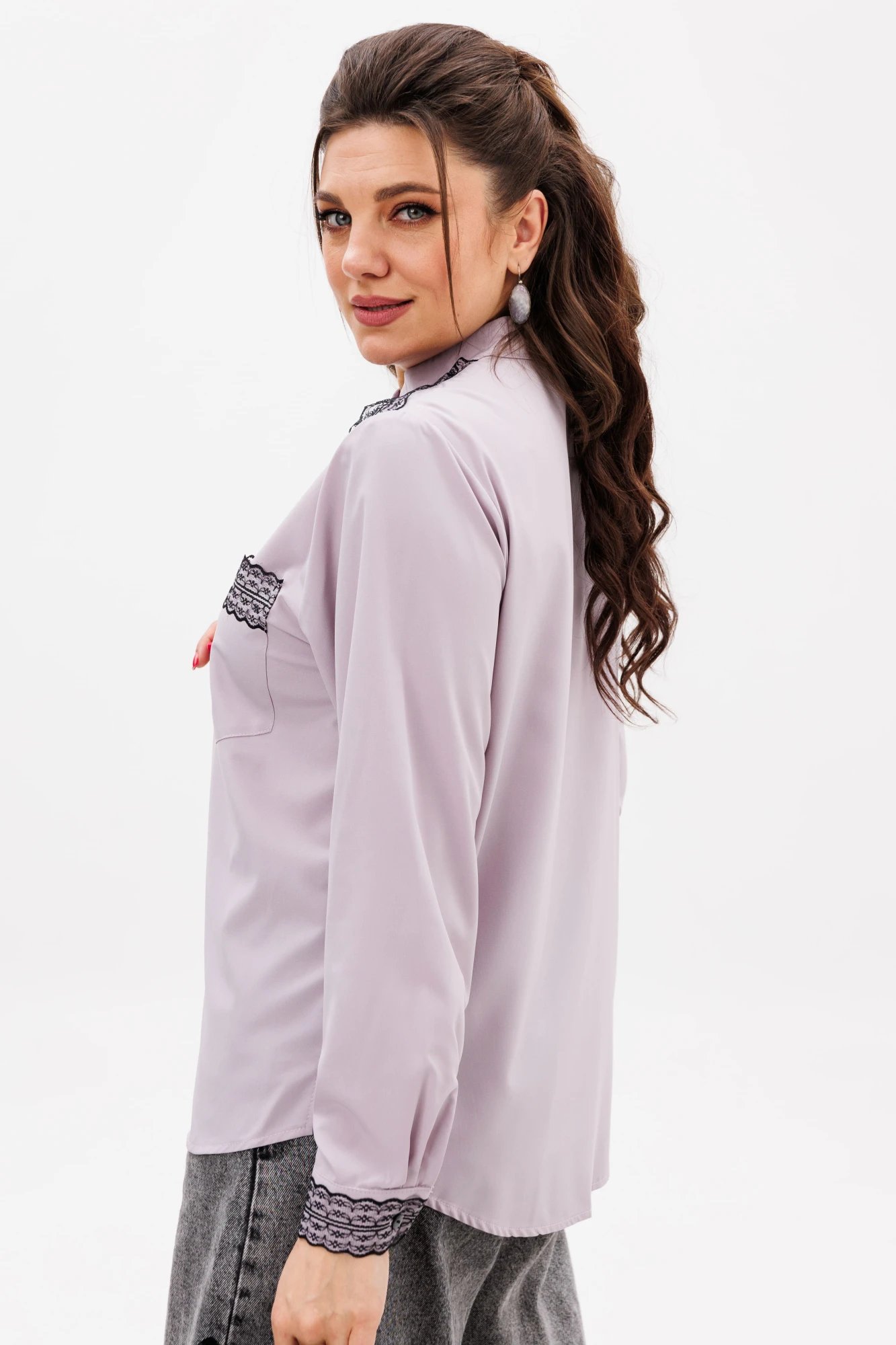52, 54Застежка на петли и пуговицы обеспечивает удобство в носке, а длинные рукава с манжетами создают завершенный образ. Ассиметричный низ с разрезами по бокам добавляет динамичности и оригинальности, а декоративная отделка кружевом придает блузе романтичный и утонченный акцент.