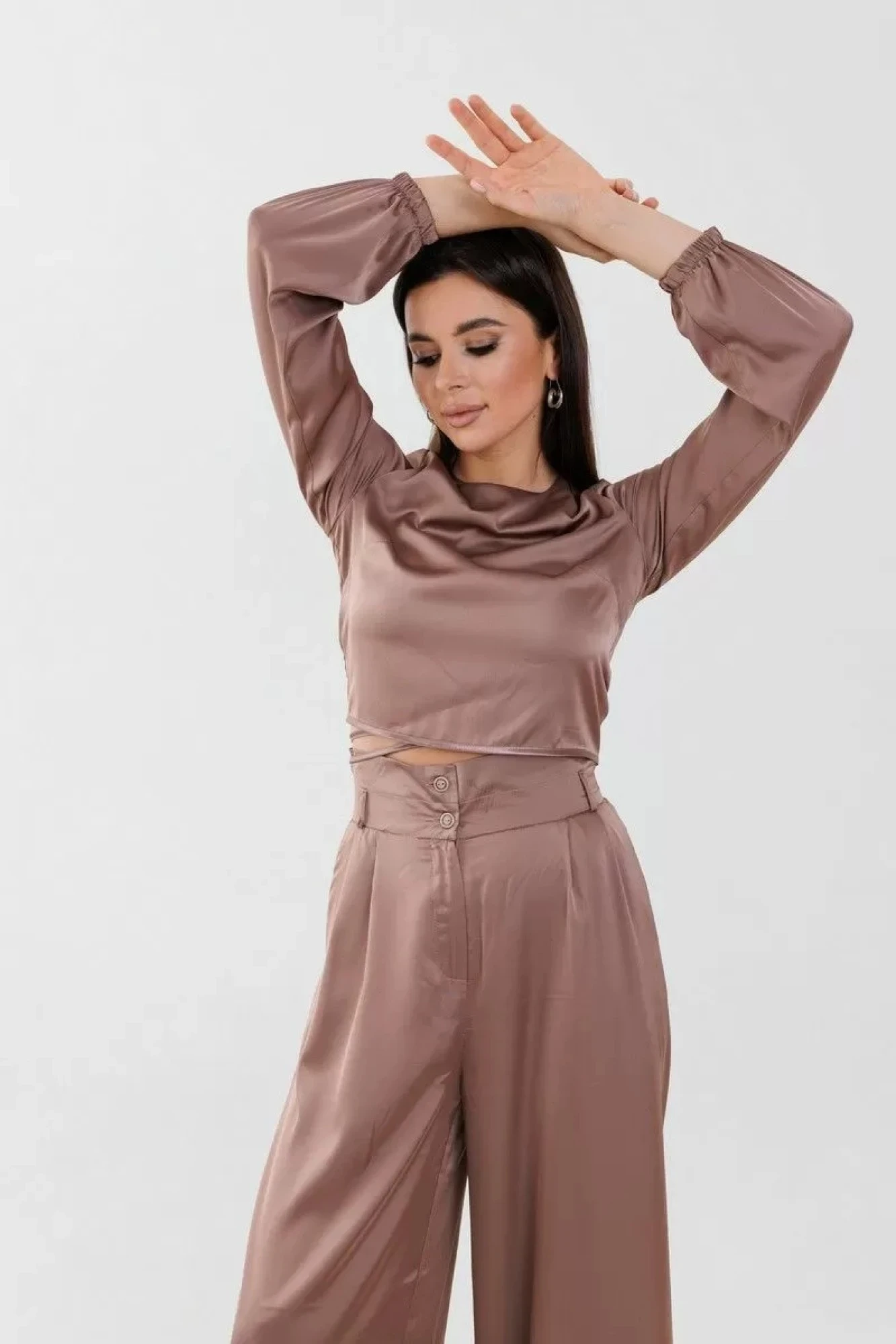 При съемке в образе использовали брюки Anelli – 1288.2 из такой же ткани