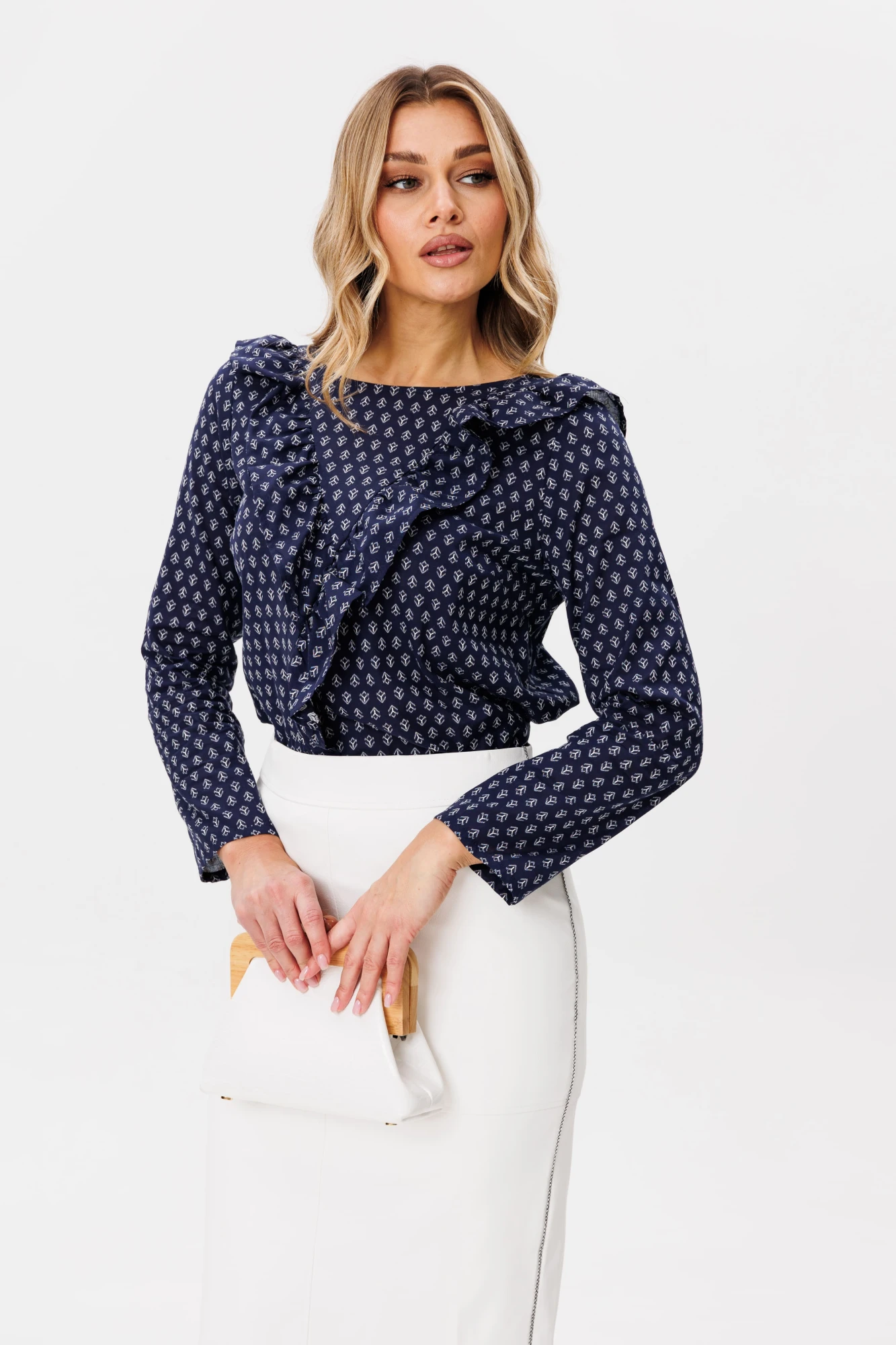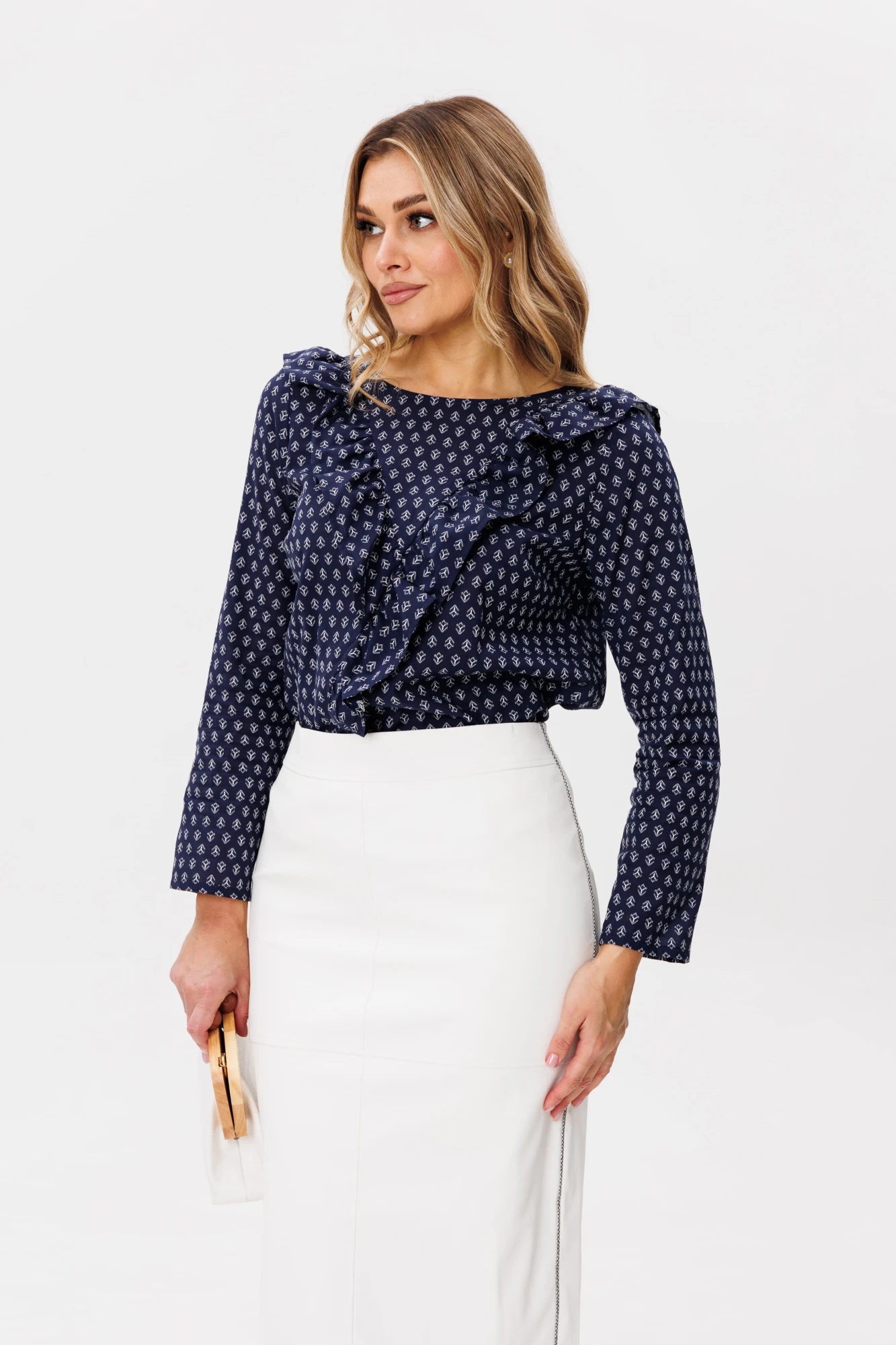 Длинные втачные рукава придают блузке элегантный вид и делают её идеальной для повседневной носки. Эта модель отлично сочетается с различными стилями и станет универсальным элементом вашего гардероба.