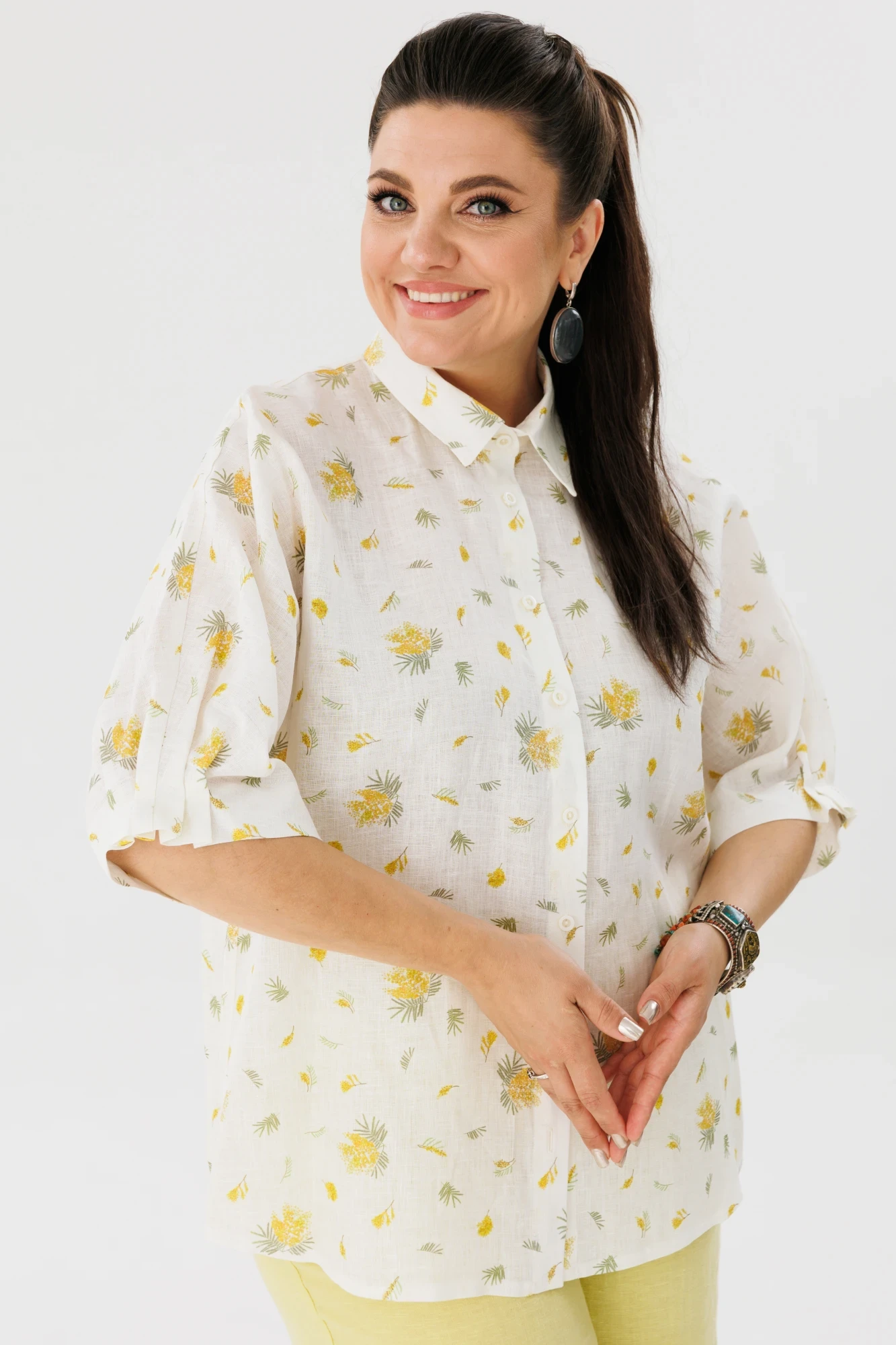 На модели льняные брюки 1425.2. Приобретайте брюки и блузу по отдельности или костюмом под артикулом 1465.