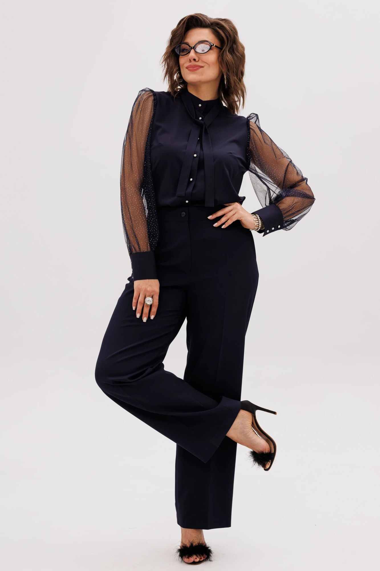 На модели в блузе цвета «звездное небо» синие брюки 1540 от Анелли.