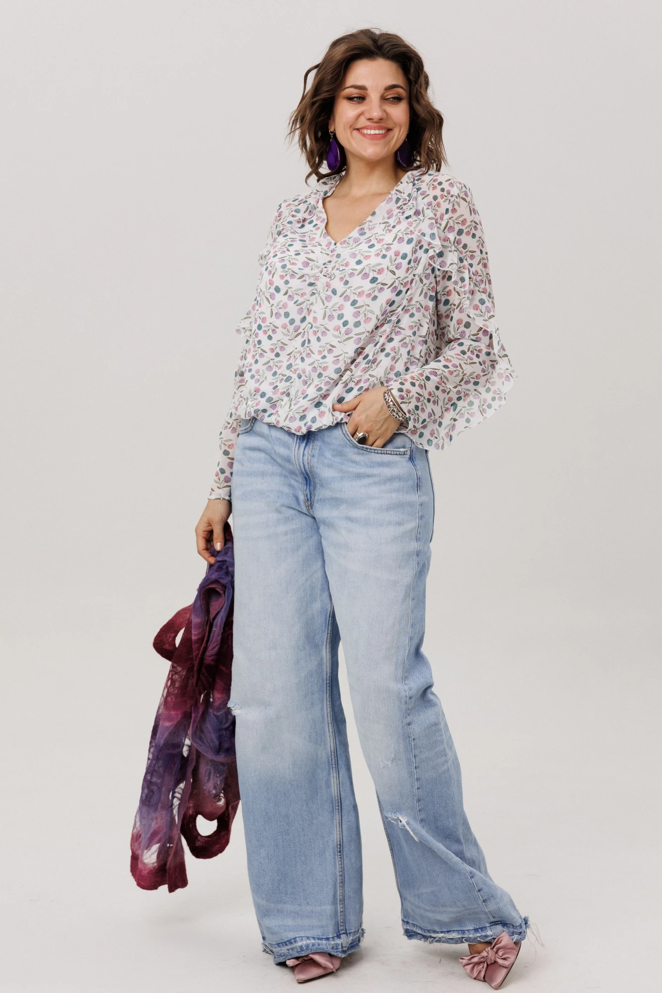Она столь же уместна для романтической городской прогулки и для неспешного бранча в уютной кофейне. Эта вещь преобразит строгий офисный лук, смягчив его нежной спиралью волана, и станет изысканным выбором для свидания, когда каждое движение будет отмечено воздушной игрой ткани.