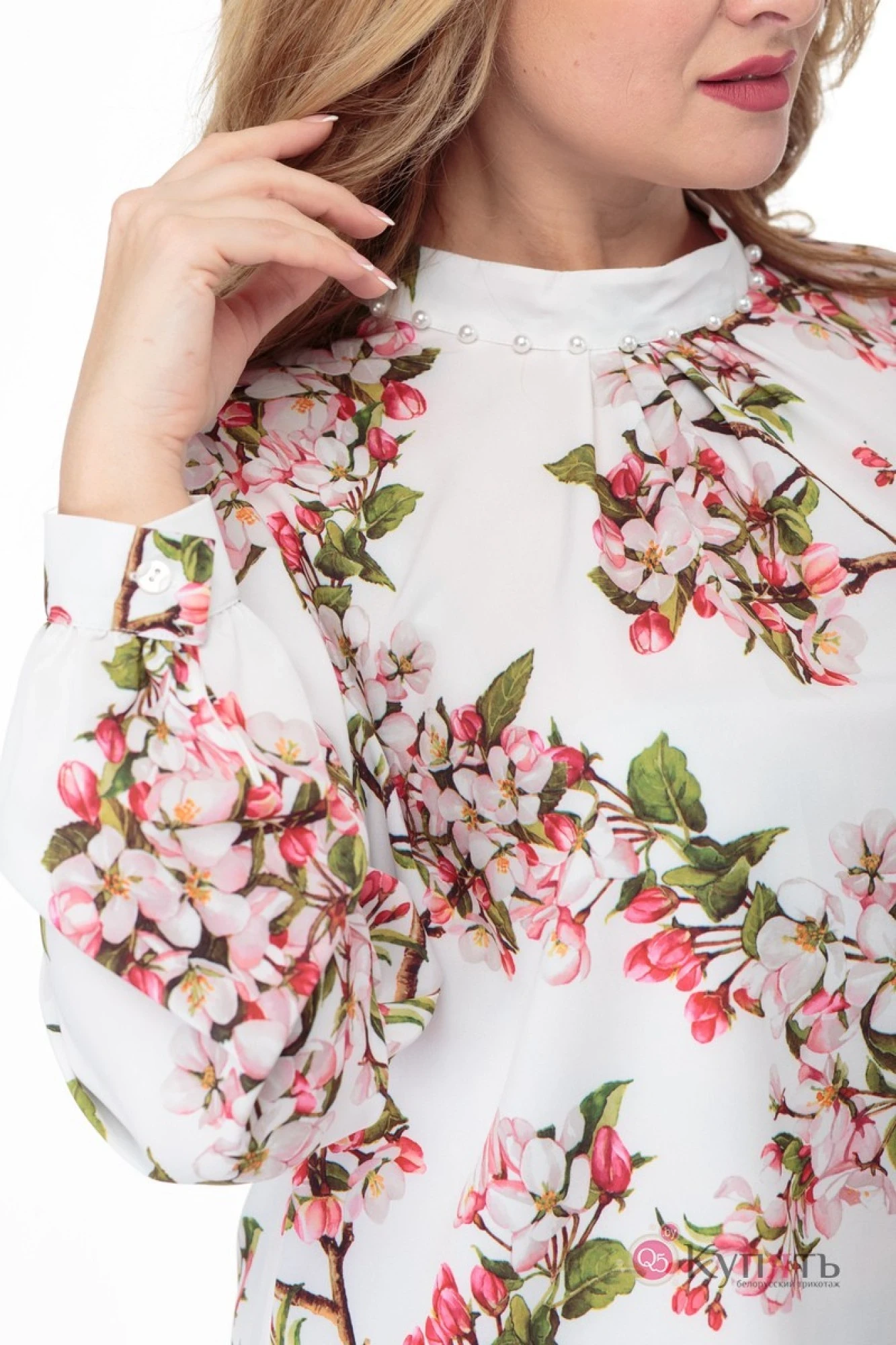 Горловина с притачной невысокой стойкой и россыпью жемчужин, изящные складочки по переду делают образ нежным, женственным!