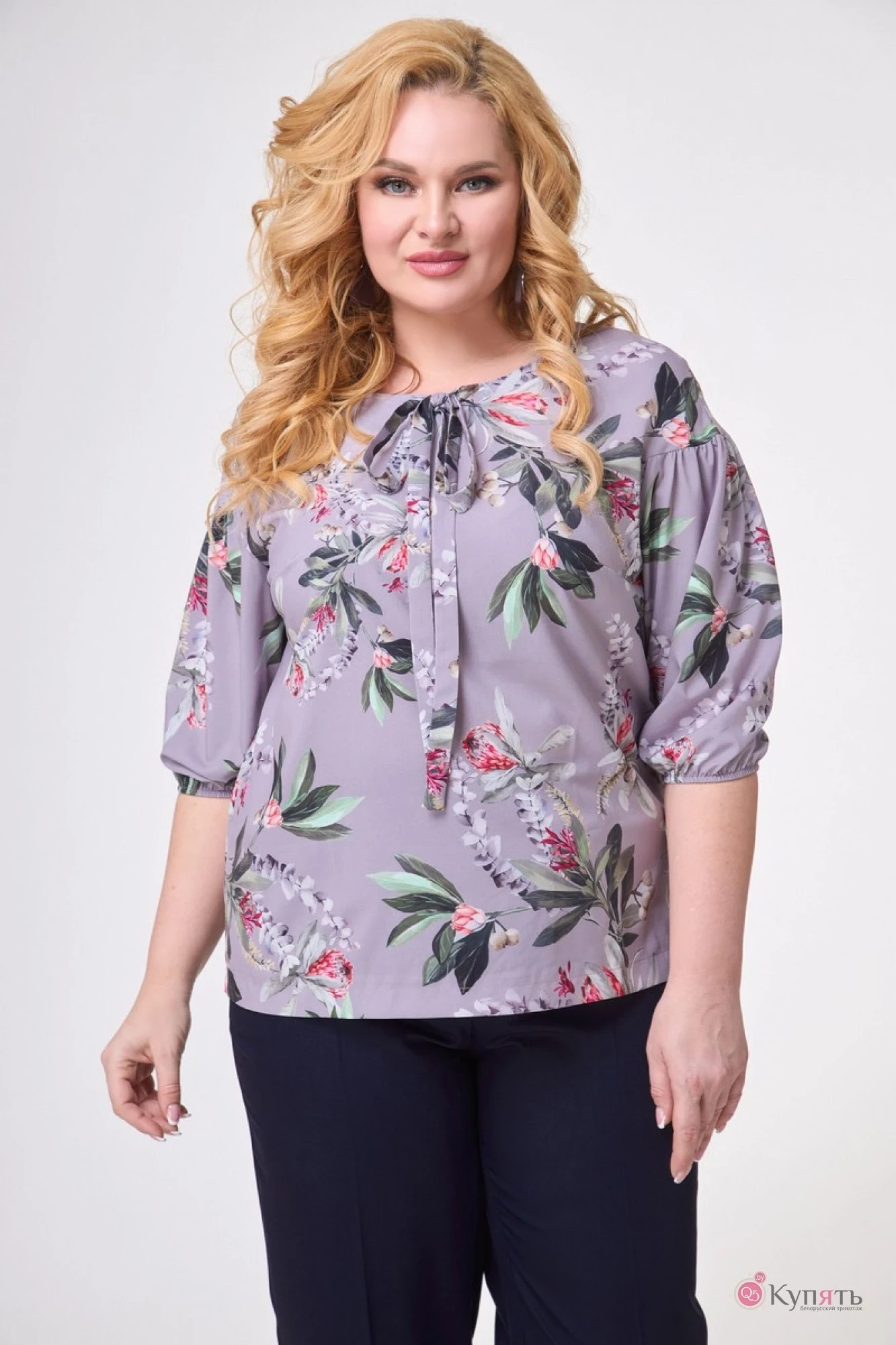 Блузка Anelli 831 лиловый с цветами