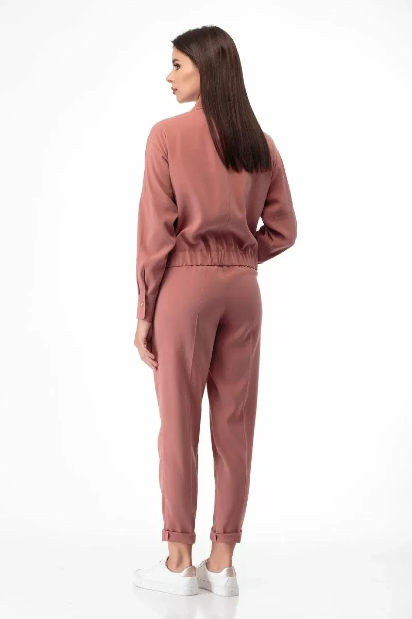 44, 46 , 48 , 50 , 52 , 54жакет прямого силуэта, однобортный с потайной застежкой на пуговицы, отлажным воротником на стойке. Низ на притачном поясе с эластичной тесьмой внутри. Накладные карманы с клапанами. Рукава рубашечного покроя с декоративным подрезом с отстрочкой. Низ рукава на притачном манжете, дополнен съёмным завязывающимся поясом.