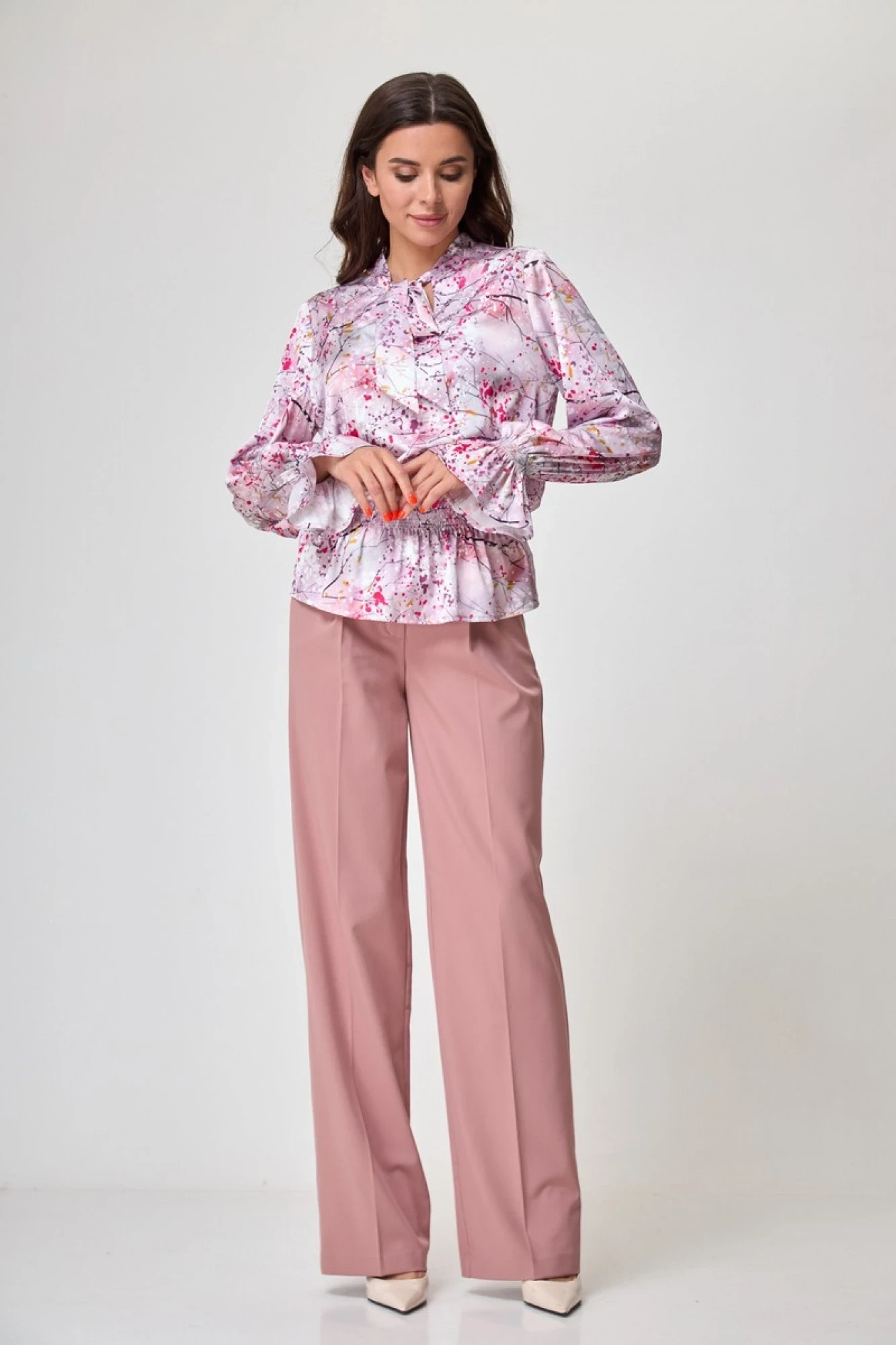 Блуза прямого свободного силуэта, со сборкой по линии талии.