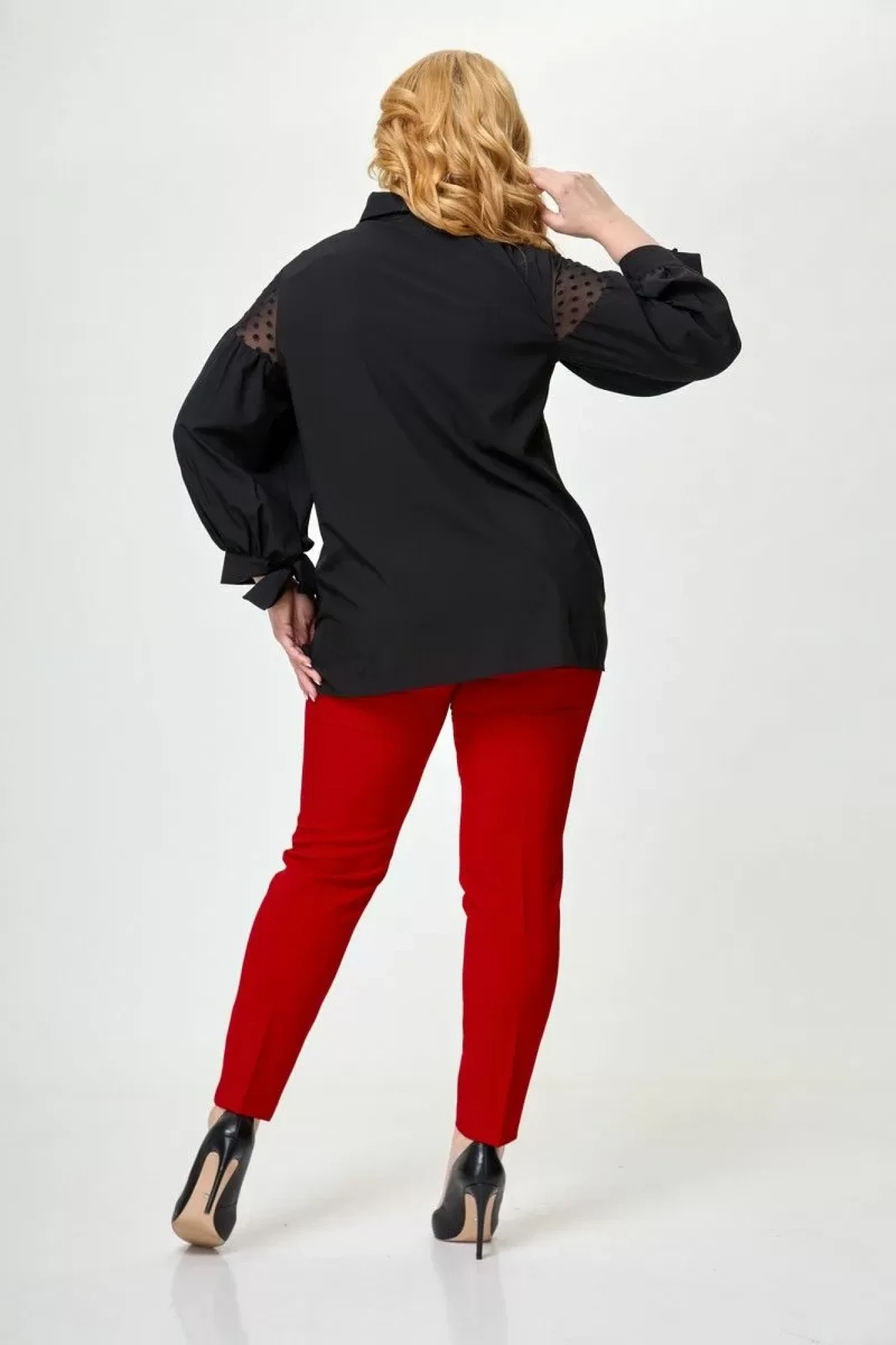 Особенностью и украшением блузы являются рукава, в верхней части которых вставлено хлопковое ажурное кружево. Низ рукавов присборен на манжетах, которые кокетливо завязываются на бант.