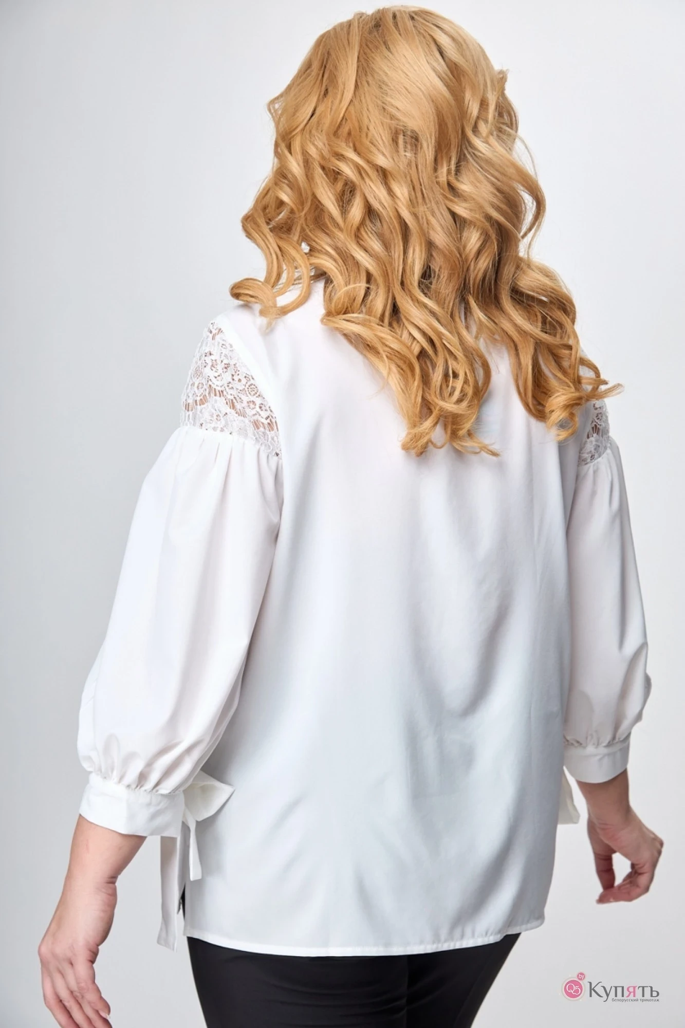 Особенностью и украшением блузы являются рукава, в верхней части которых вставлено хлопковое ажурное кружево. Низ рукавов присборен на манжетах, которые кокетливо завязываются на бант.