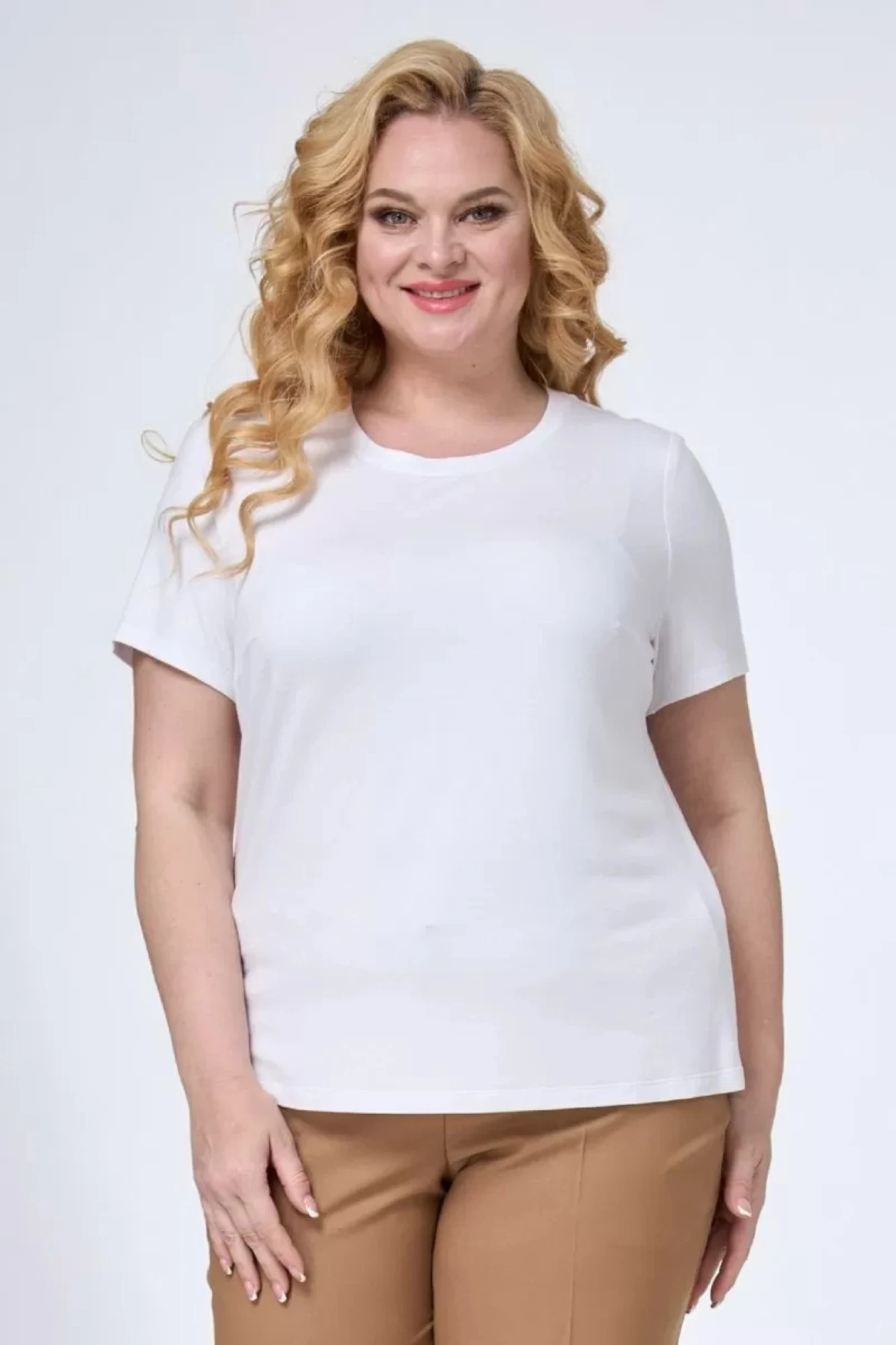 Футболка полуприлегающего силуэта из трикотажной ткани, с округлой формой горловины, с нагрудными вытачками по переду. Рукав короткий, втачной."