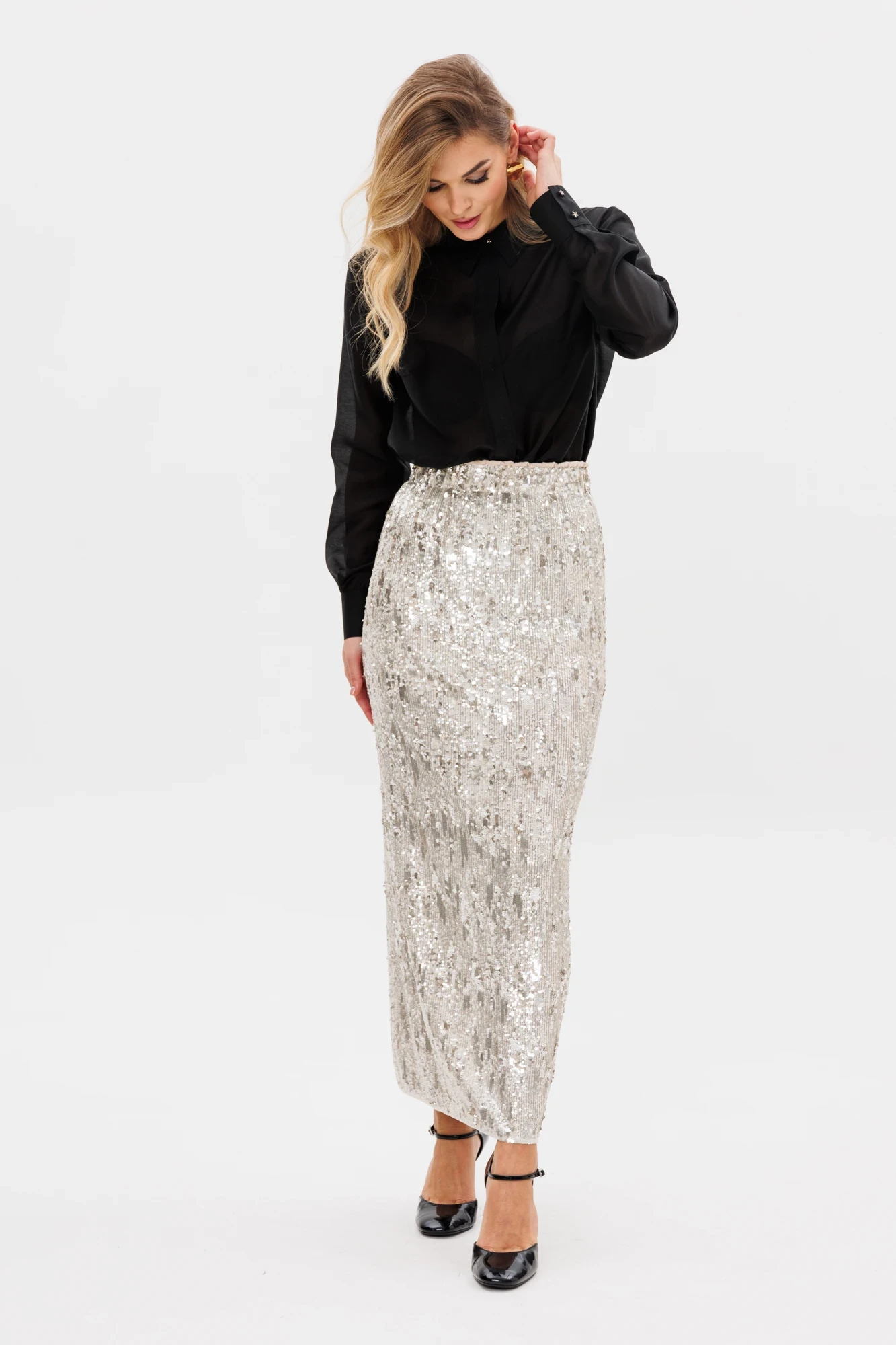 46,48, 50 , 52 ,54Длина блузки: р. 42-46 - 69 см, р. 48-52 - 70,5 см. Длина рукава: р. 42-46 - 61 см, р. 48-52 - 62 см.