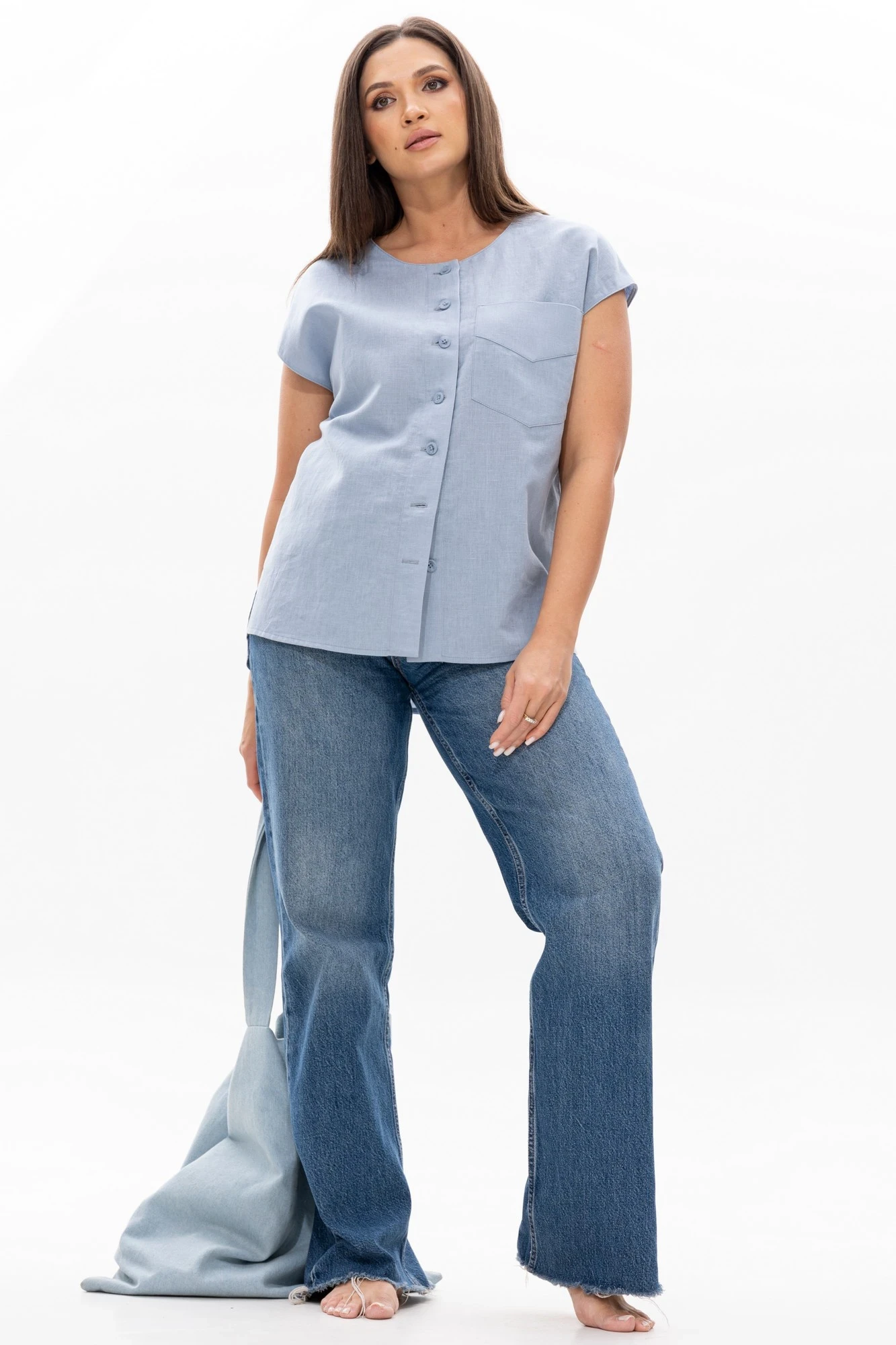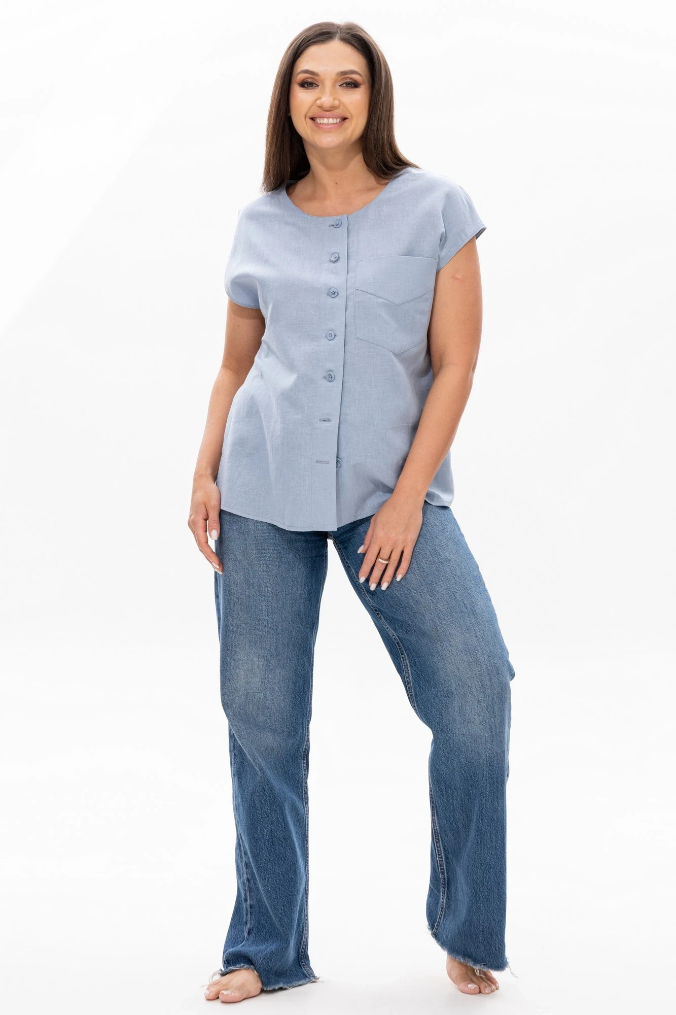 Незаменимая блуза для жаркого лета. Будет идеально смотреться с нашими льняными брюками брюками 2047, 2050 или 2053.