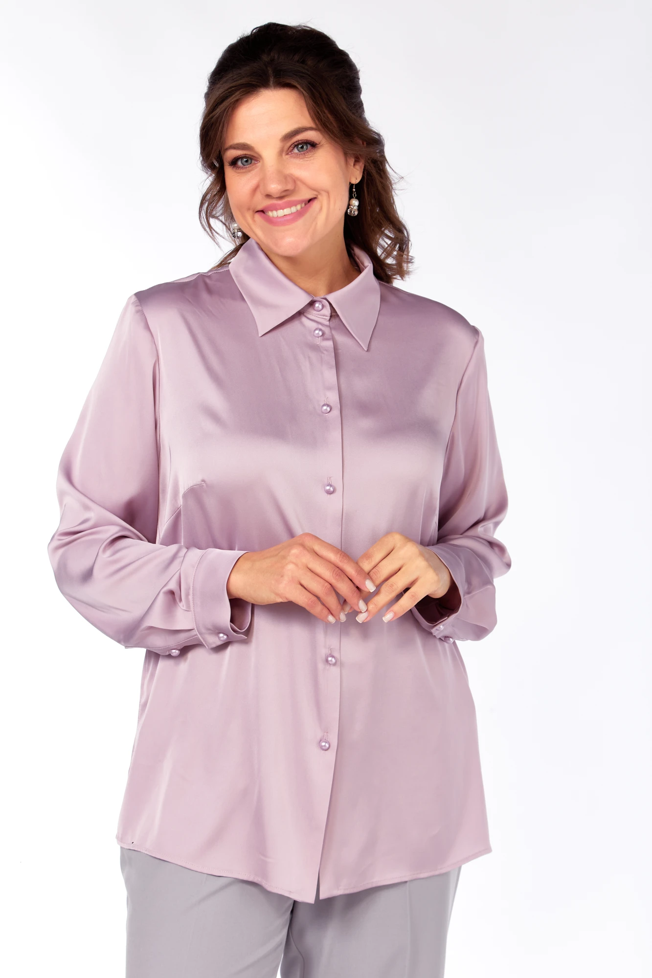 Блузка Ольга Стиль 962 пудровый сирень