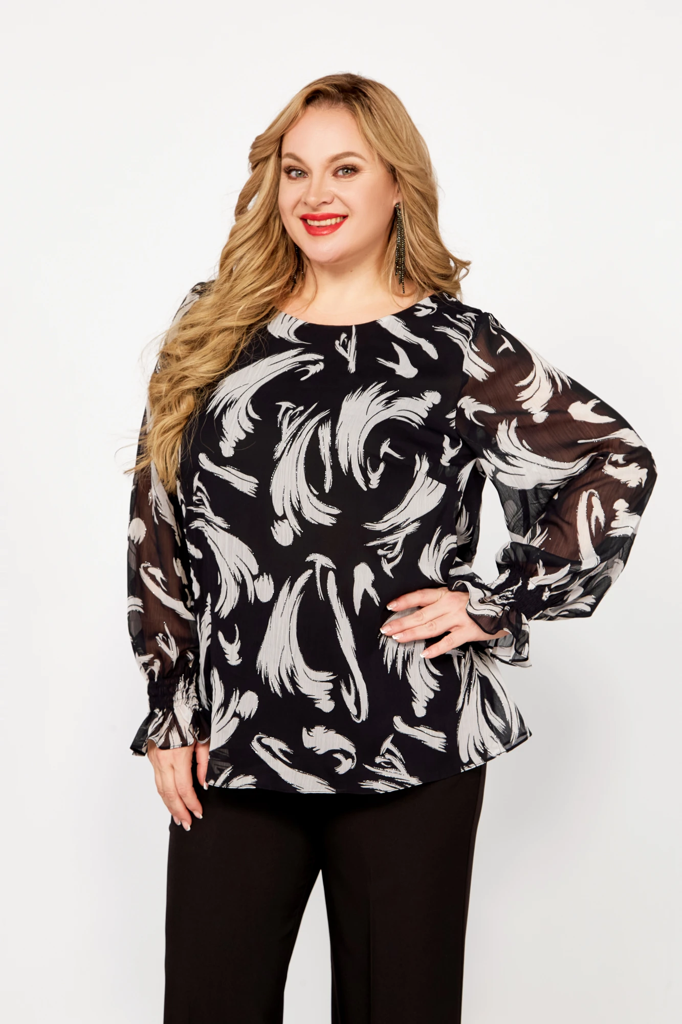 Блузка Swallow 803.2 Чёрный, в серебряный узор