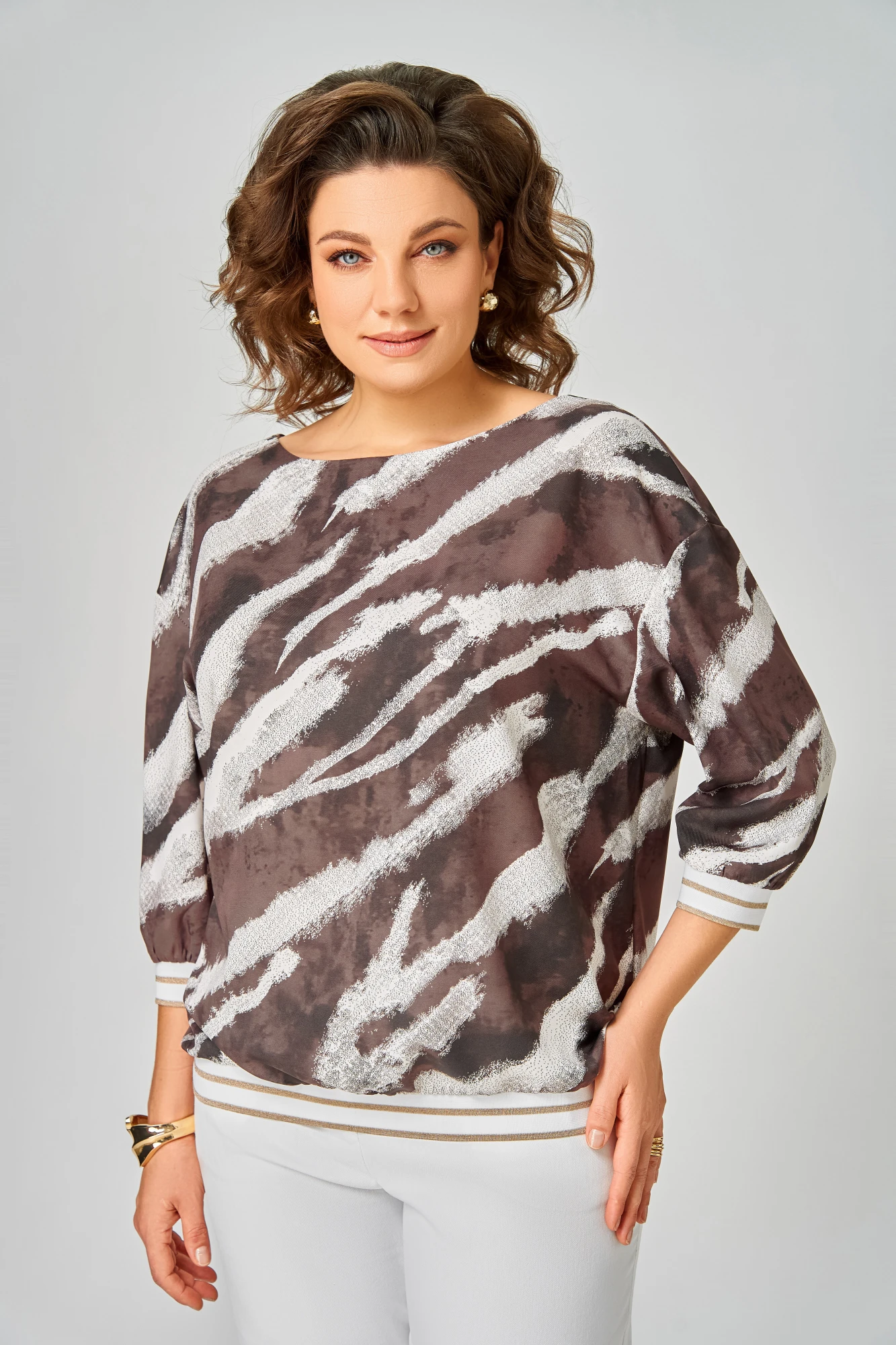 Блузка Swallow 872.3 Молочный шоколад, принт «белая абстракция»