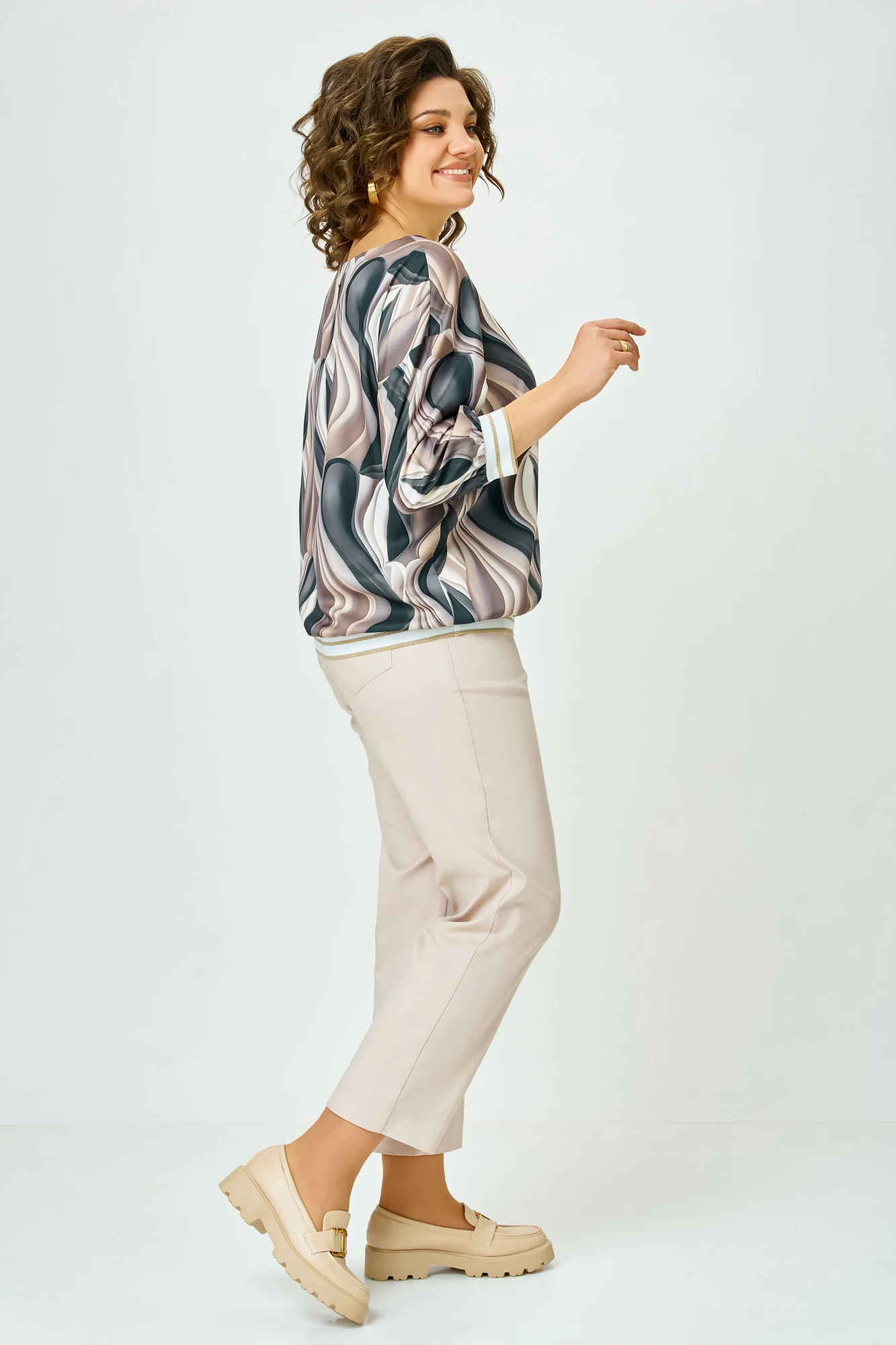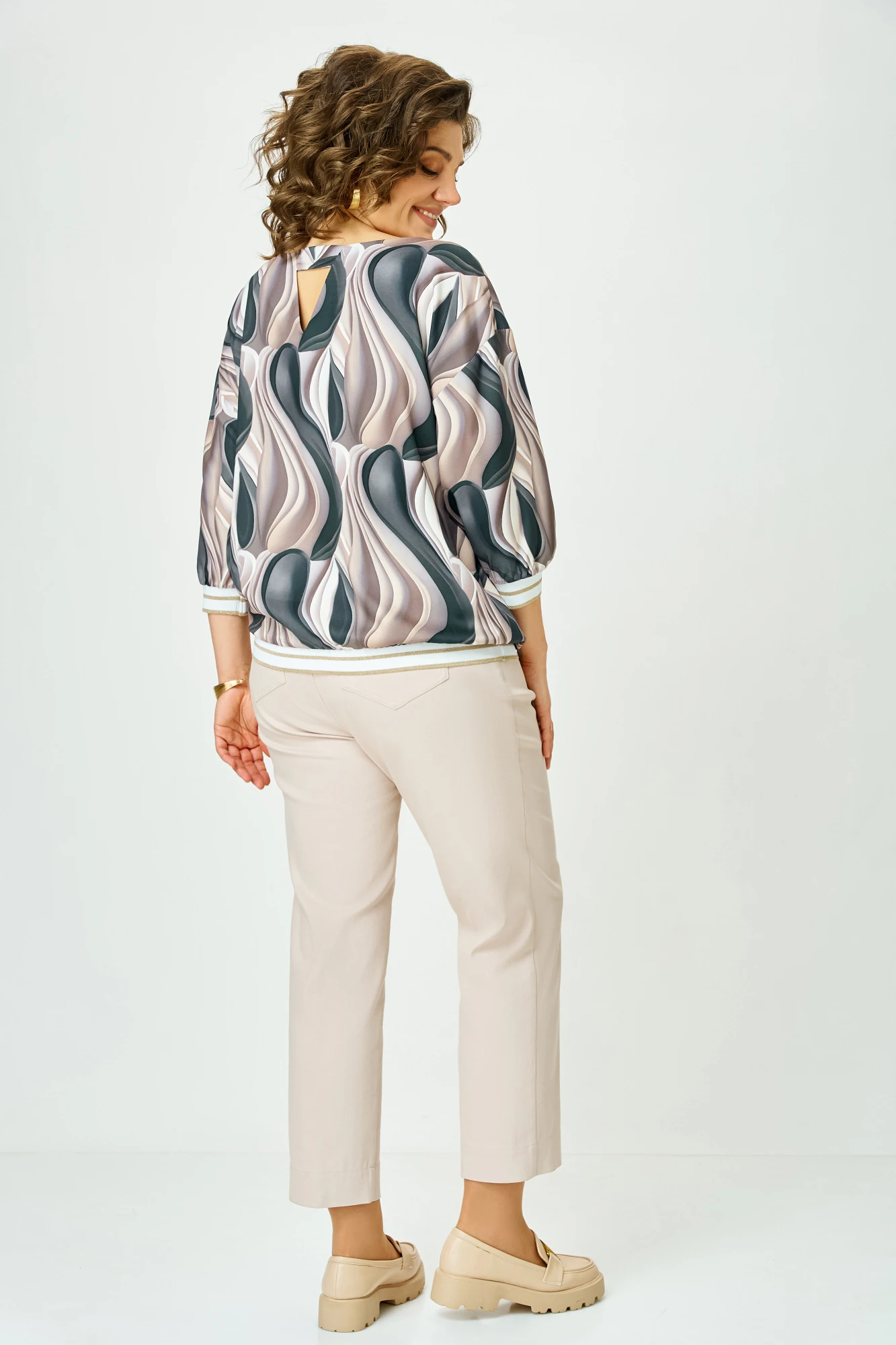 Блузка Swallow 872.7 Принт_«чёрно-коричневые_разводы»