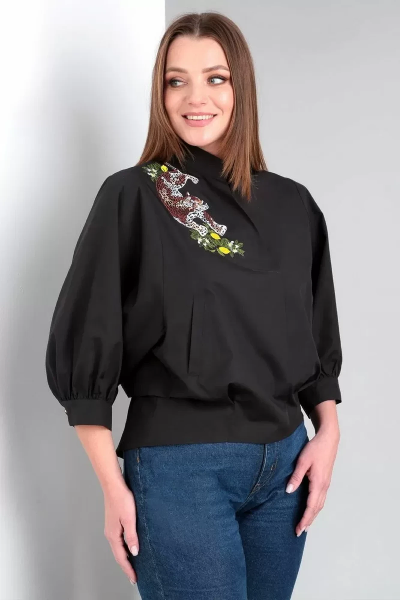 44,46, 48 , 50 ,52, 54Блуза фиксированная по линии бедер за счет защипов по низу изделия, невероятно комфортна. Воротник-стойка. Рукав длиной ¾ присборенный по манжету. Полочка блузы –вырез горловины выполнен заходом полочек друг на друга, закрепленный строчкой, также имеются прорезные карманы. По спинке от воротника идет застегивающаяся планка на пуговицы.