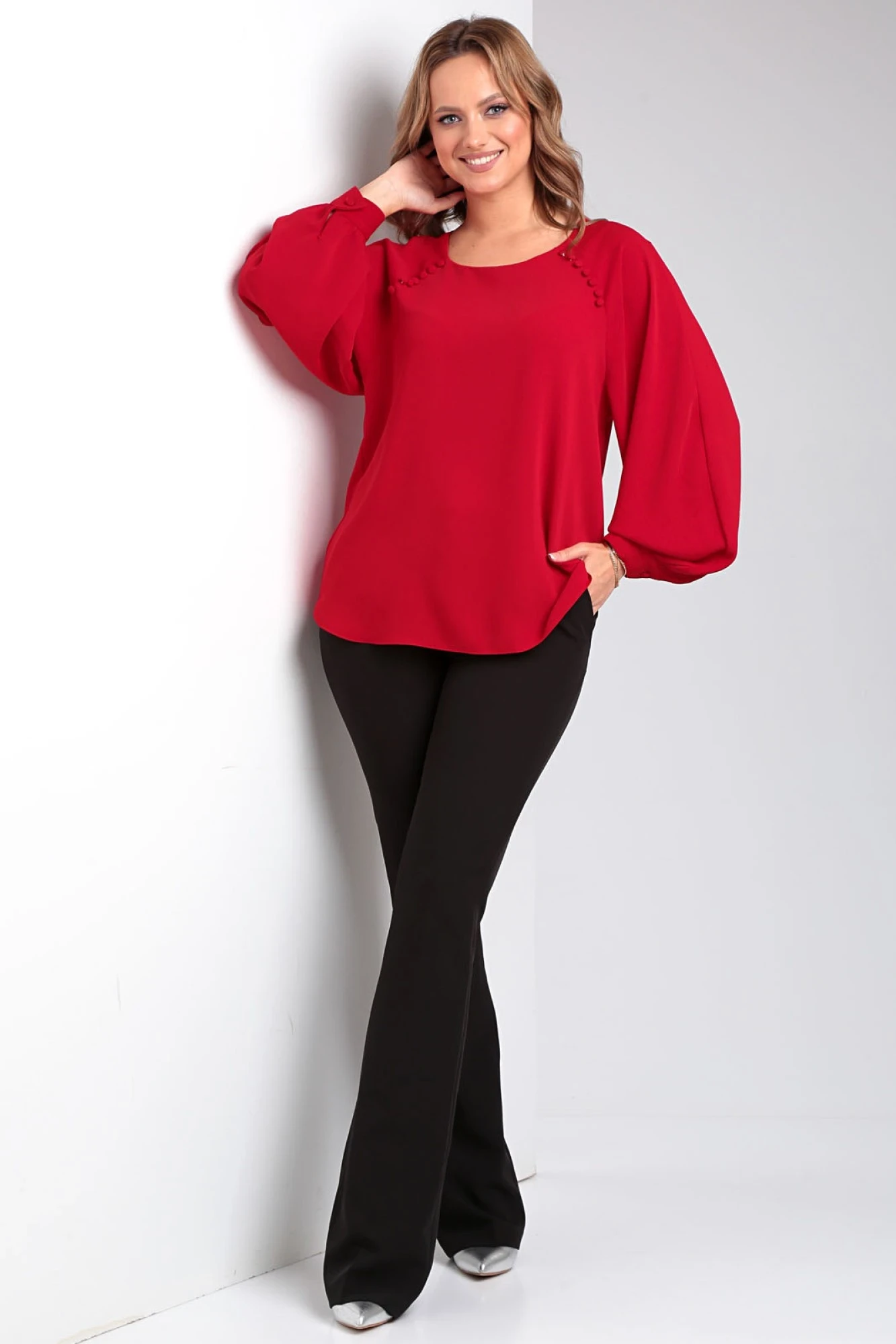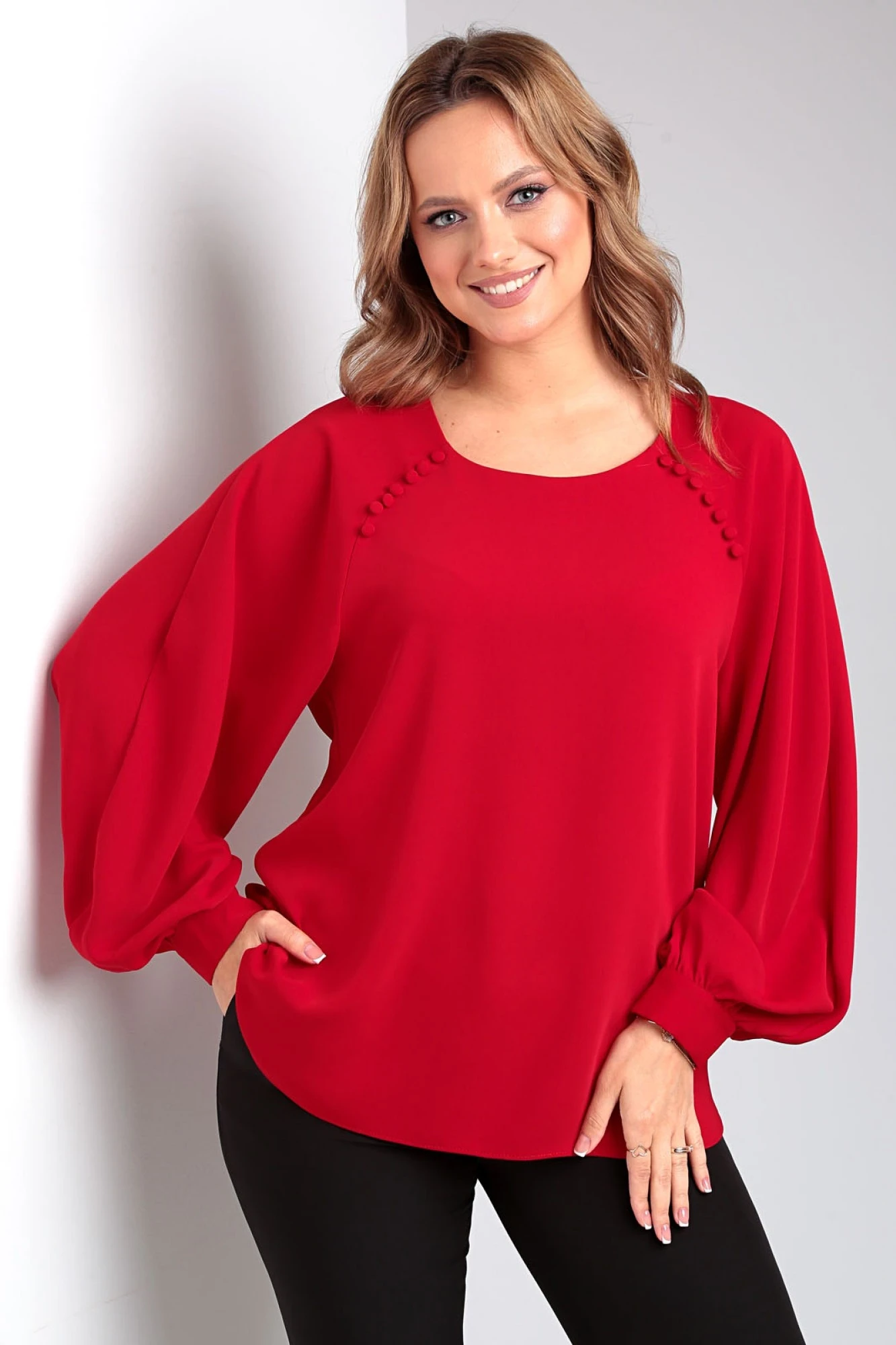 52, 54 ,56,58,60,62,64Горловина, углубленная, круглая обработана обтачкой. Рукав – реглан, по низу присборен на манжет. В качестве украшения, по шву втачивания рукава, от горловины, по переду, пришиты декоративные пуговки.