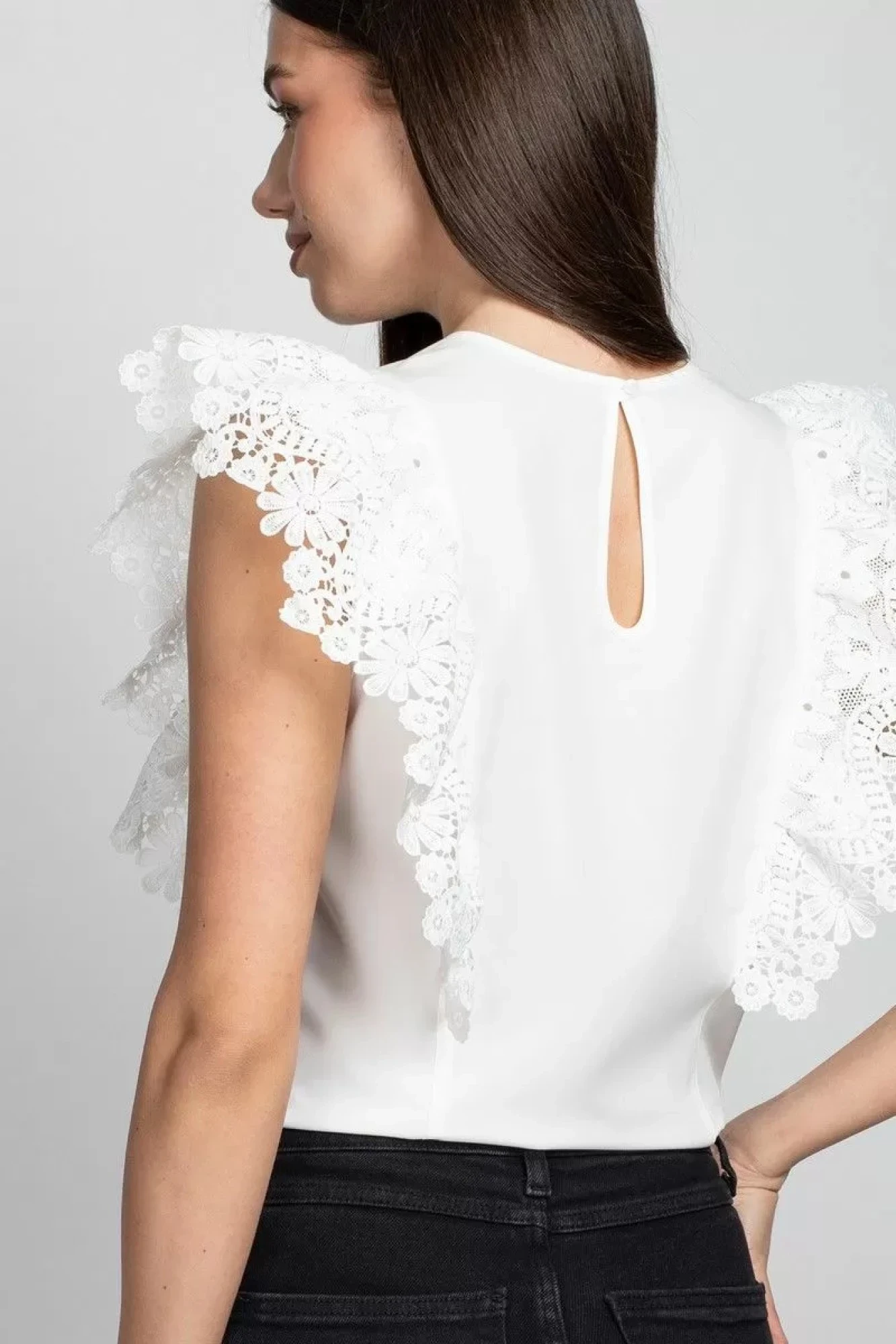 Спинка с капелькой и застежкой на навесную петлю и пуговицу. Пройма окантована.