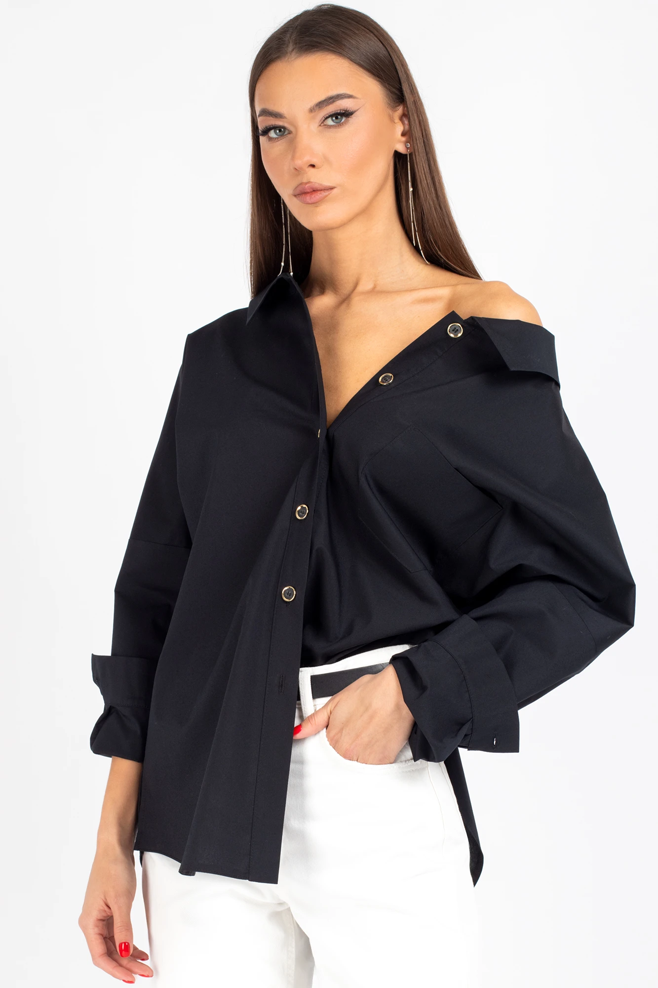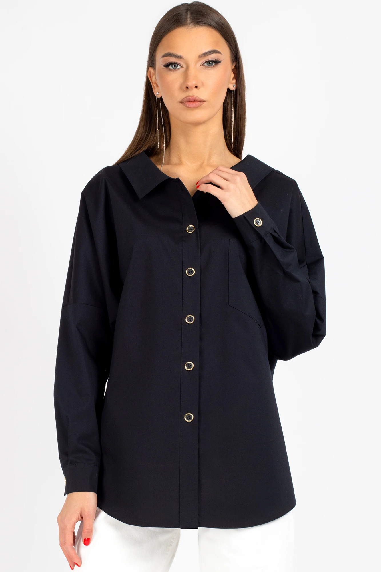Рубашка с отложным воротником.