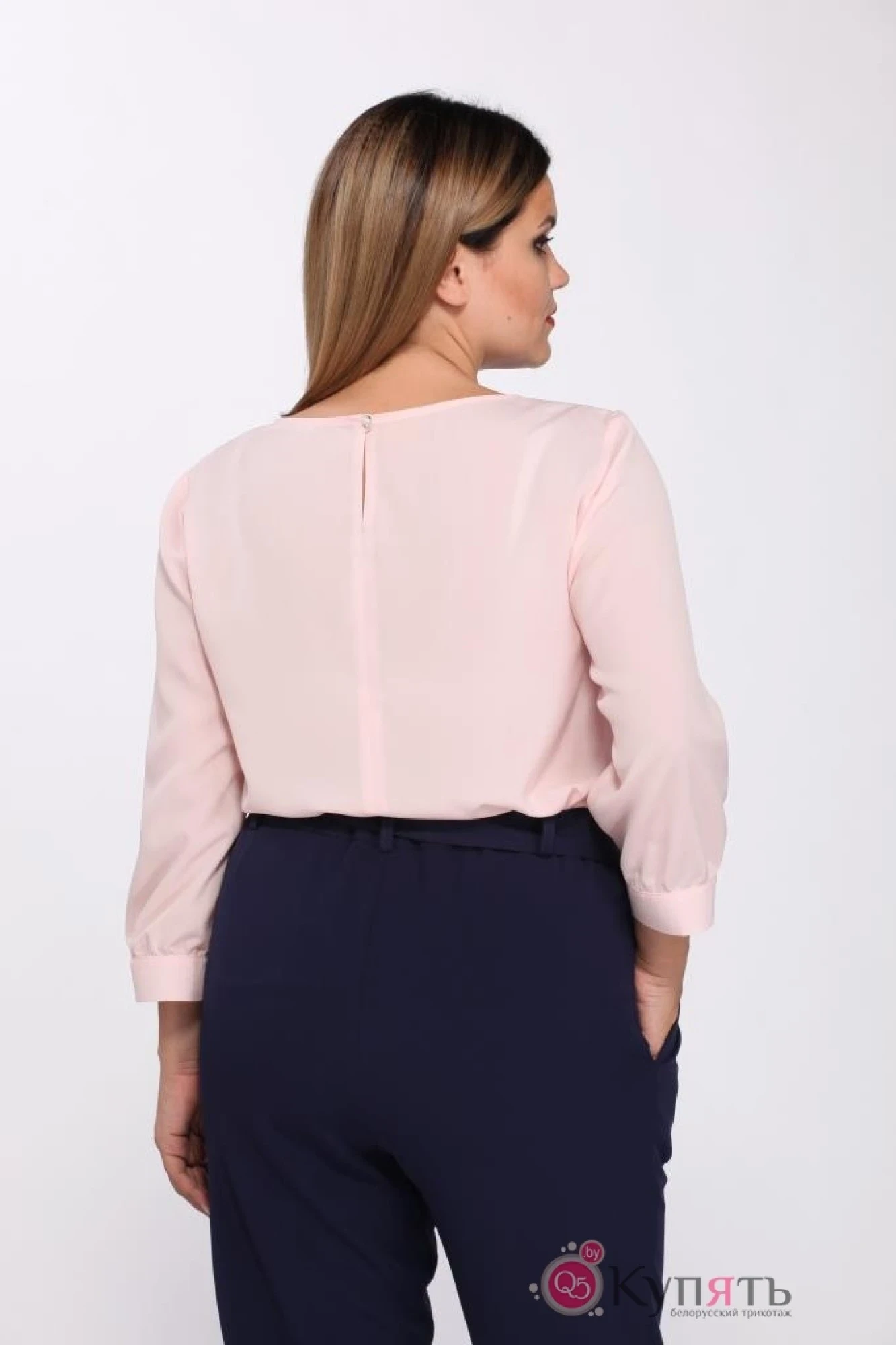 Блуза женская полуприлегающего силуэта. Перед с нагрудными вытачками. Вырез горловины круглый, окантован. Спинка со средним швом. В среднем шве спинки застежка на одну навесную петлю и пуговицу. Рукав втачной, одношовный, с притачной манжетой. В боковых швах разрез.