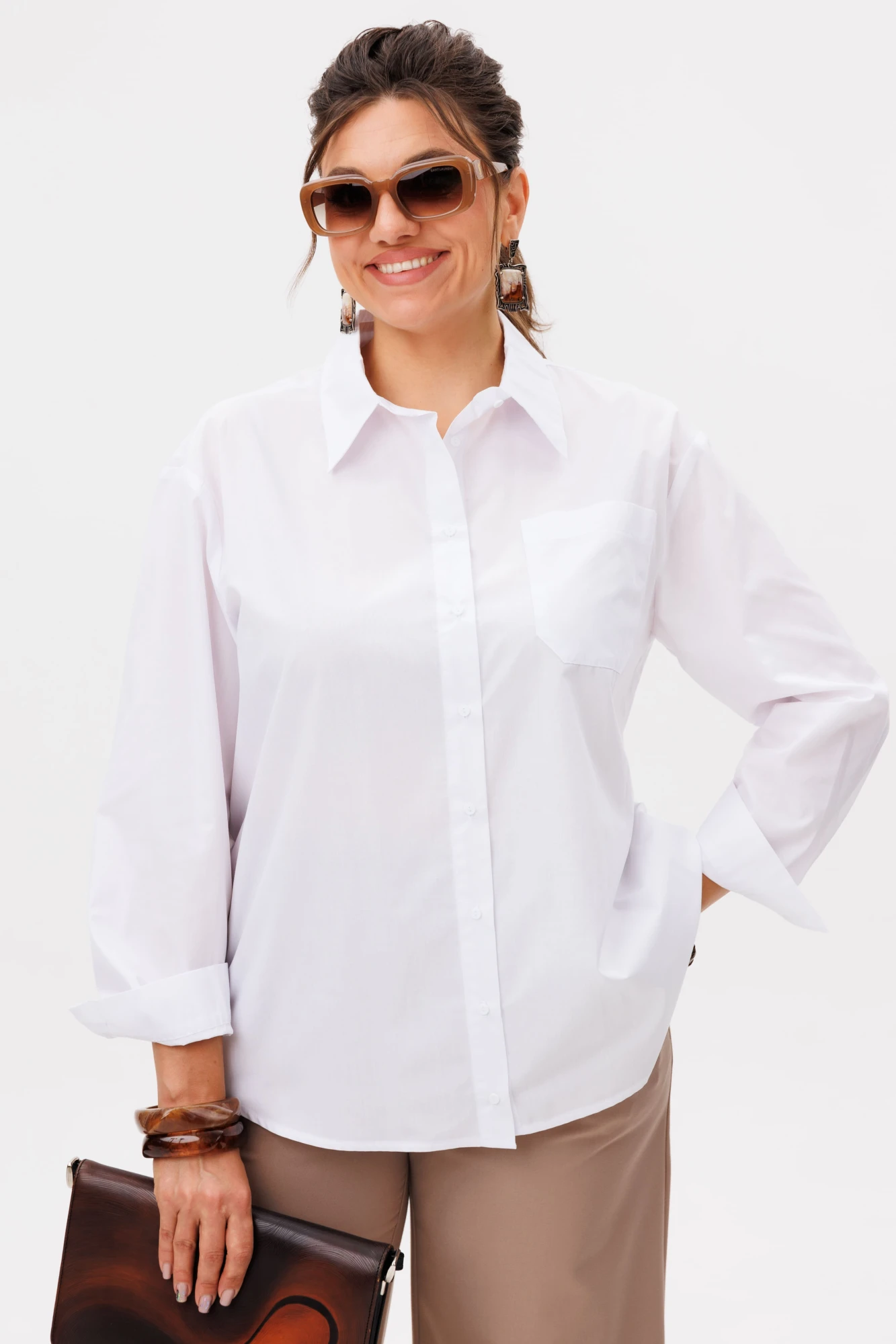 Свободный крой напоминает рубашки, взятые напрокат из мужского гардероба, — слегка oversize, с удлиненными линиями, но при этом безупречно лежащий по фигуре. Длинные рукава с аккуратными манжетами можно закатать для небрежной легкости или оставить распущенными для строгой собранности. А тот самый карман на груди — не просто деталь, а молчаливый намек на рабочую эстетику, превращающую даже самый повседневный look в историю со смыслом.