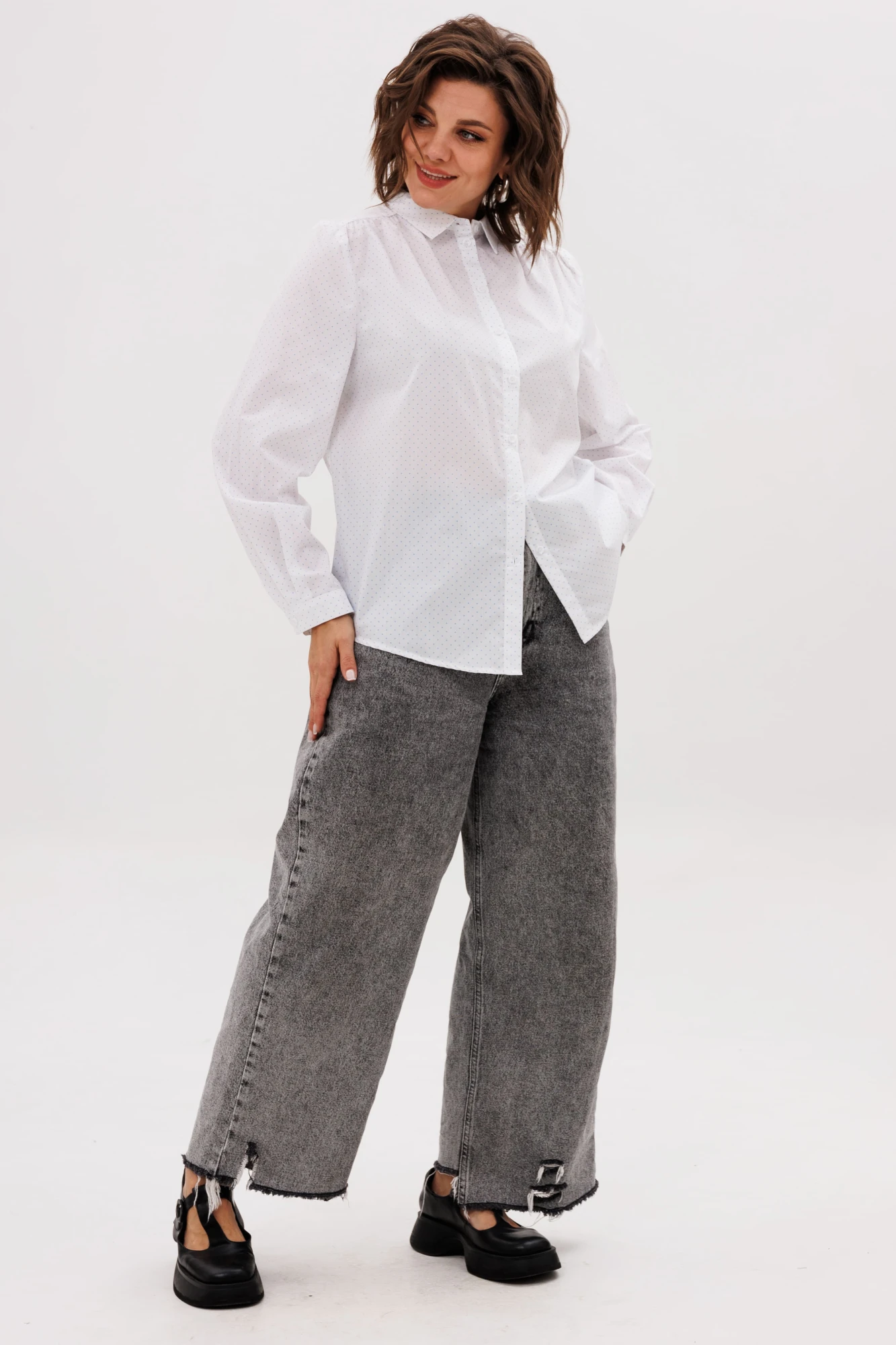 Рукава втачные, с манжетами — сидят аккуратно и комфортно. Небольшая сборка по переду от кокетки и аккуратная встречная складка на спинке добавлены для свободы движений, чтобы блузка не тянула и не морщилась при носке.