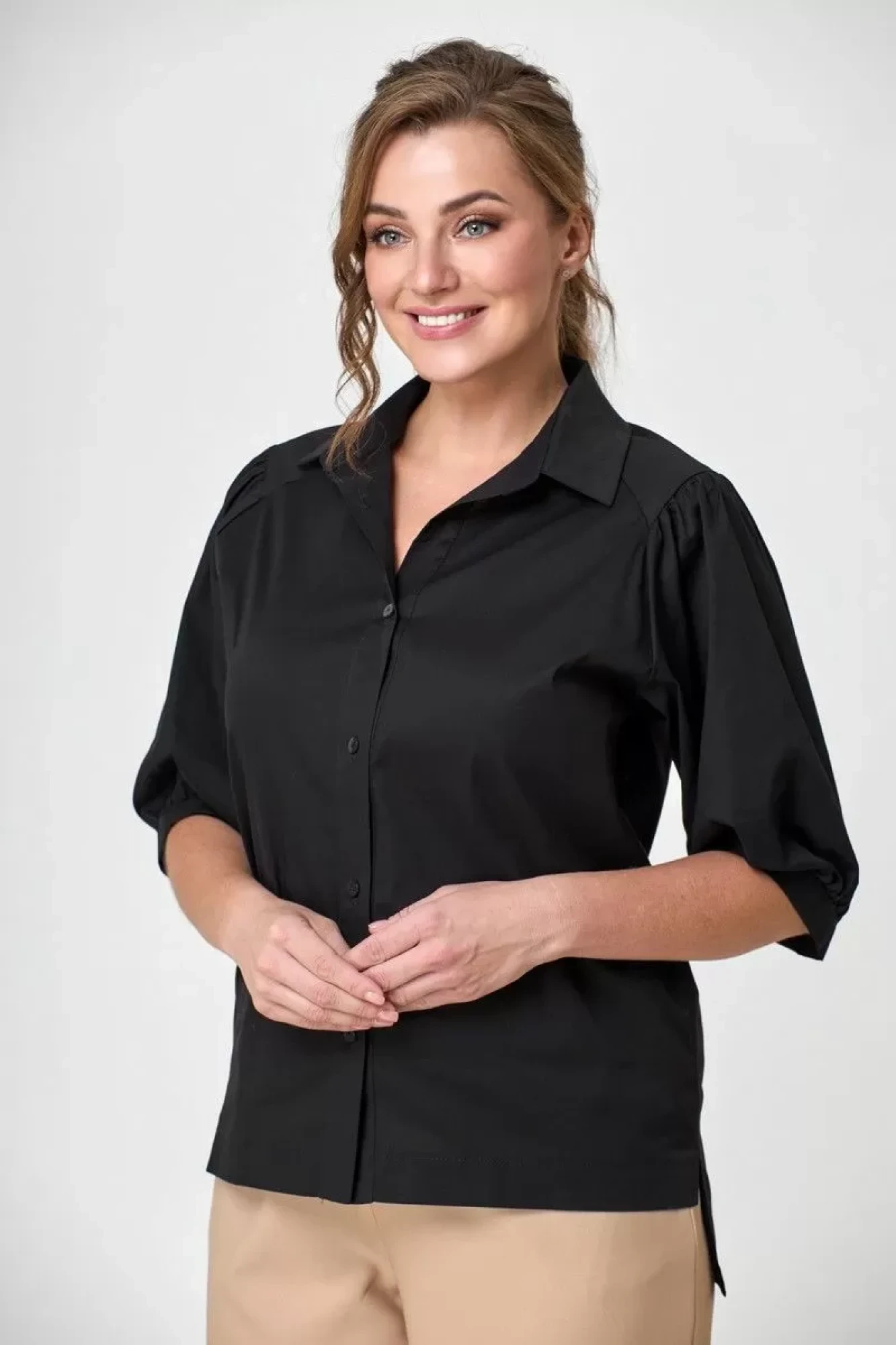 44, 46 , 48 ,50,52,54Блуза прямого силуэта, умеренного объема с асимметричной линией низа - спинка удлинённая.