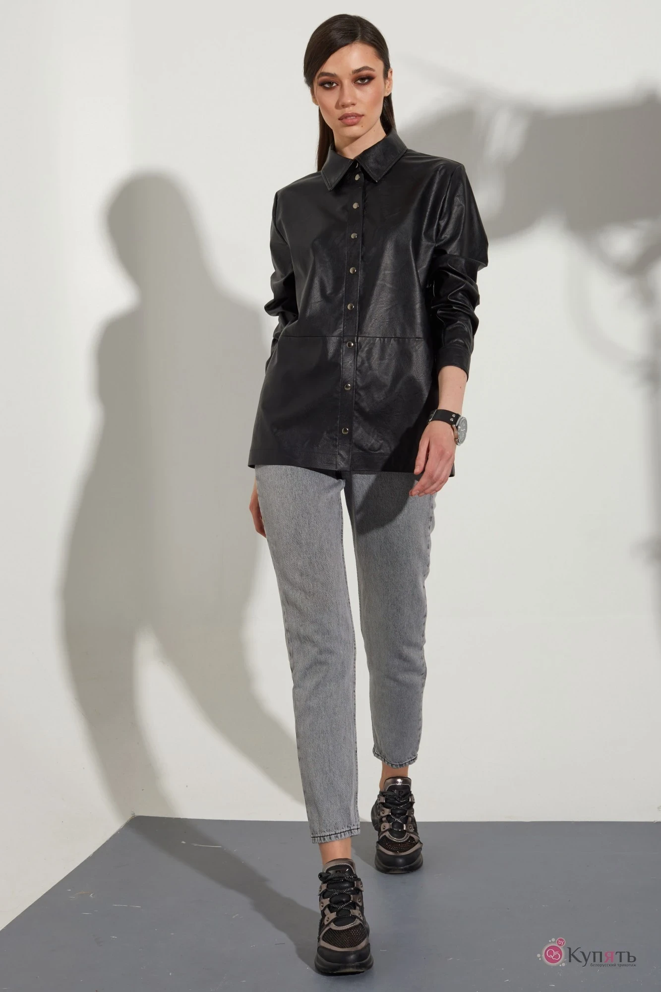Цветовая гамма для верха, подкладки, фурнитуры, отделки: блузка выполнена из кожзама в одной цветовой гамме.