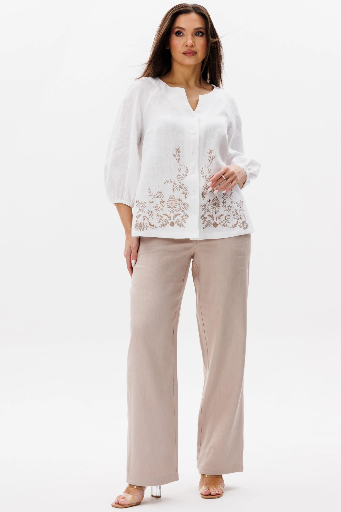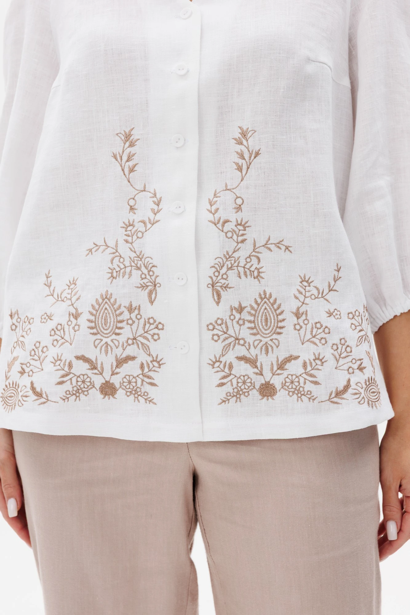 Рубашка выполнена из качественного белорусского льняного полотна (пр-во Орша). Ткань не тянется.