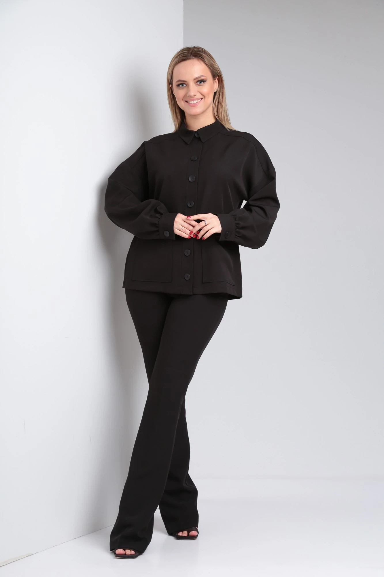 Жакет женский свободного силуэта с втачным рукавом c воротником. По переду накладные карманы и планка на застежку пуговицы. Спинка стачная. Рукав длинный с манжетой на застежку пуговицу. Эту элегантную модель вам будет несложно вписать в гардероб, создавая многослойные образы.
