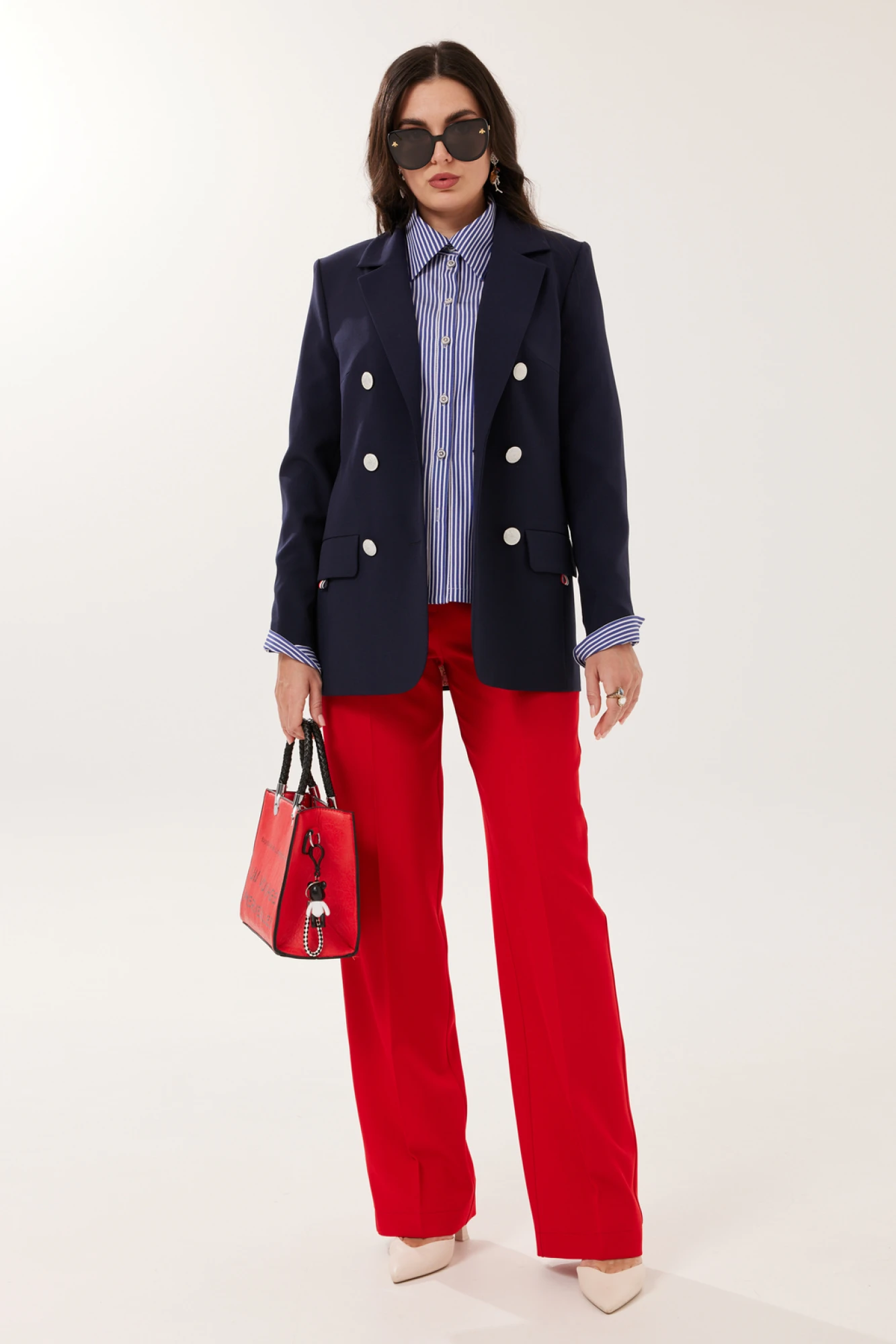 Сочетание классического кроя и современного дизайна делает этот комплект идеальным выбором для деловых встреч, вечеринок или других мероприятий, где важно выглядеть стильно и элегантно."