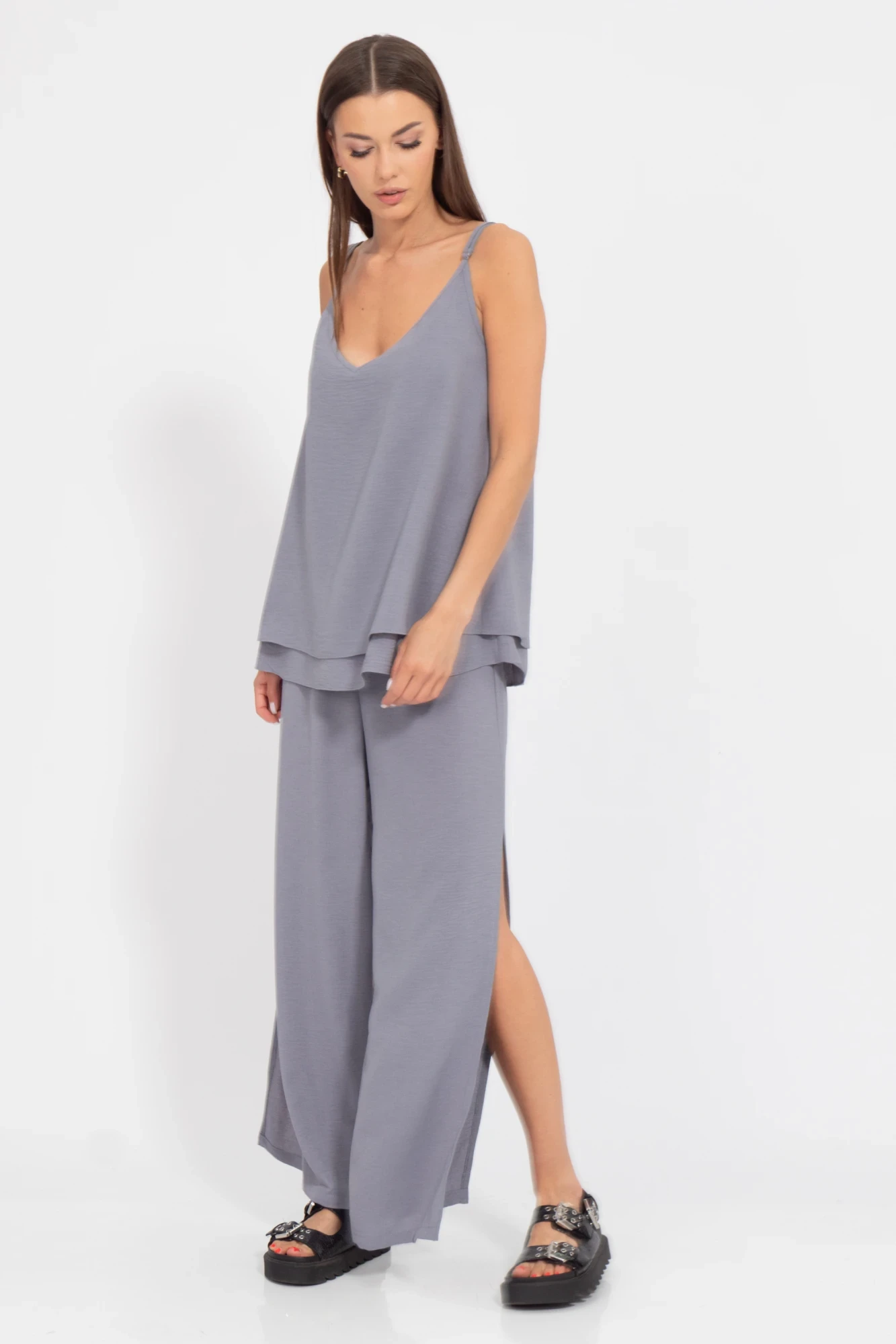 Джемпер выполнен из высококачественных материалов, обеспечивающих мягкость и долговечность изделия. Бретели регулируются, что позволяет подобрать идеальную посадку на фигуре. Разрез по спинке добавляет изюминку и делает модель ещё более привлекательной.