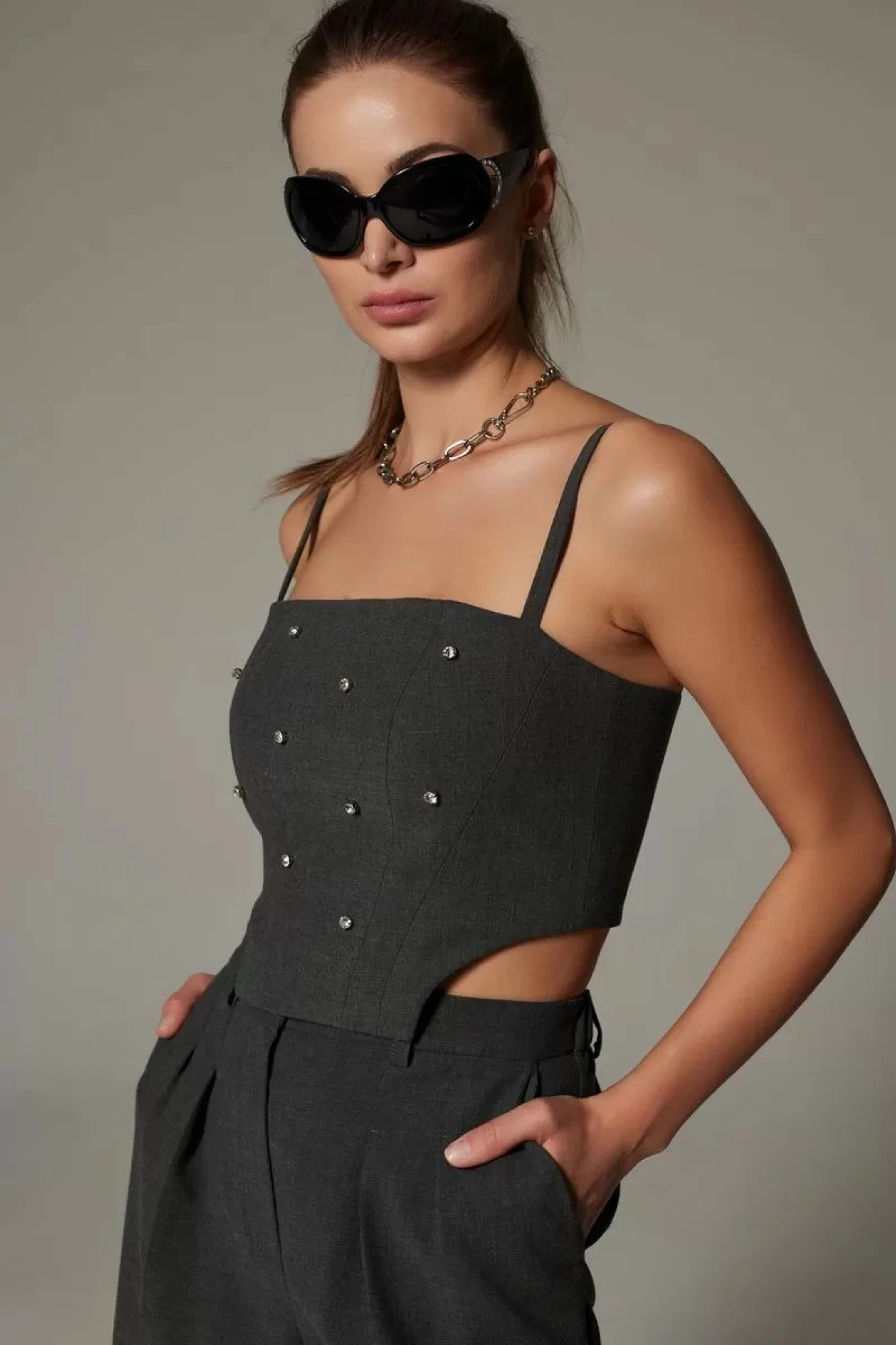 42,44,46Длина топа по центру переда 29,5 см. Длина по боковому шву 16 см. Длина по центру спинки 15 см.