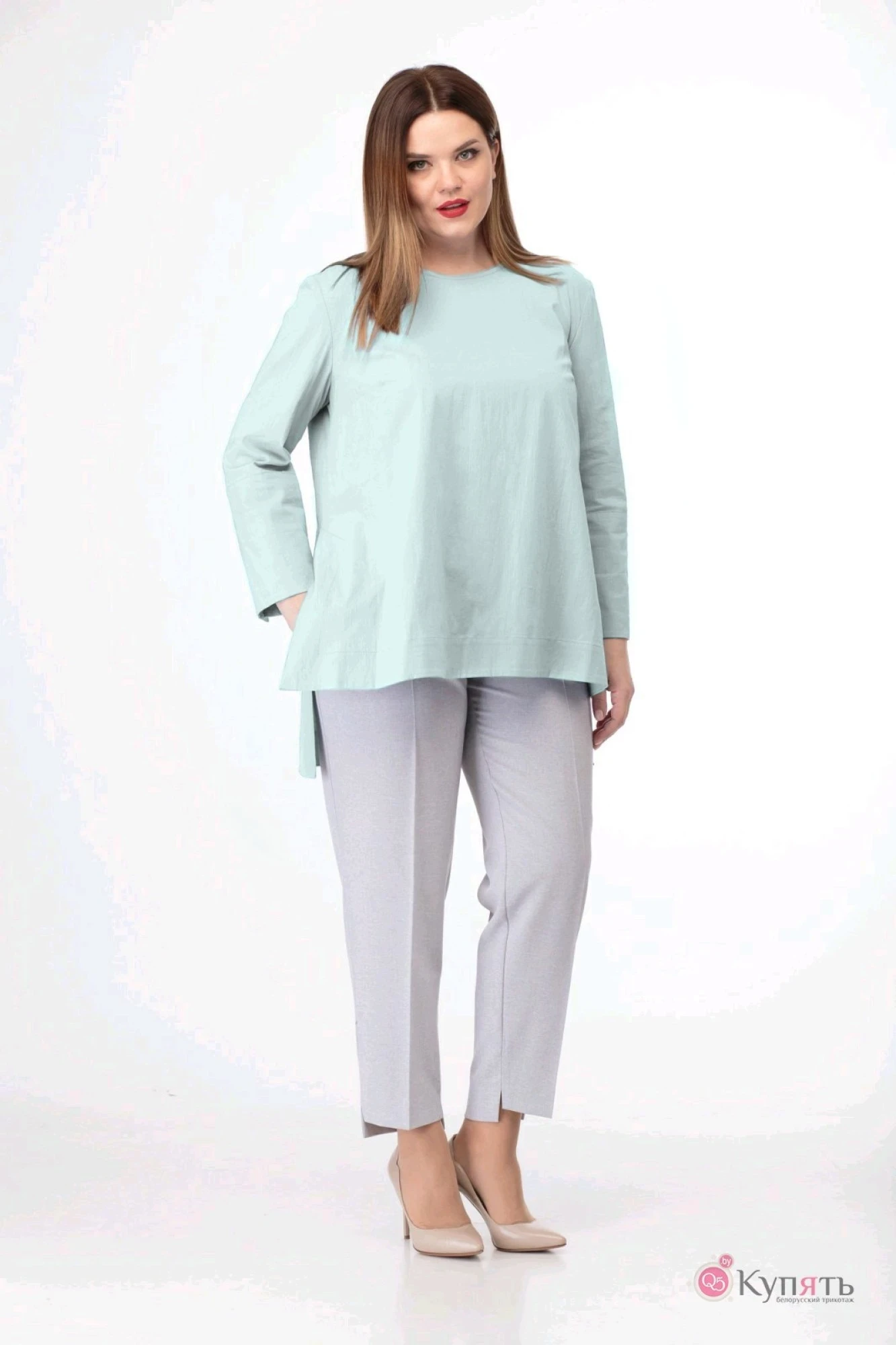 На фотографии с туникой в голубом тоне в образе так же сфотографированы наши брюки артикула – 700.