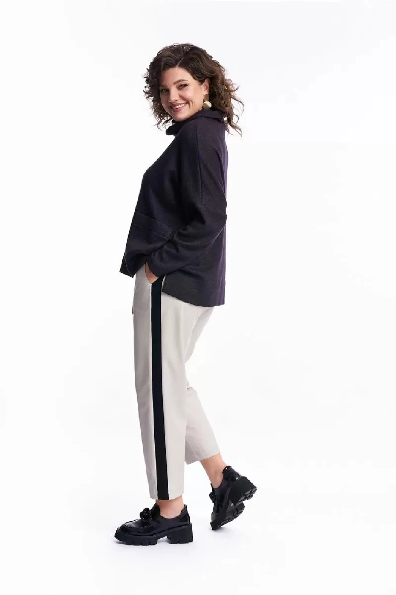 Длина брюк по боковому шву с поясом 97 см. Параметры в 50 размере: ОТ 104см, ОБ 112см, параметры в 52 размере ОТ 108 см, ОБ 116см, параметры в 54 размере ОТ 112см, ОБ 120см.