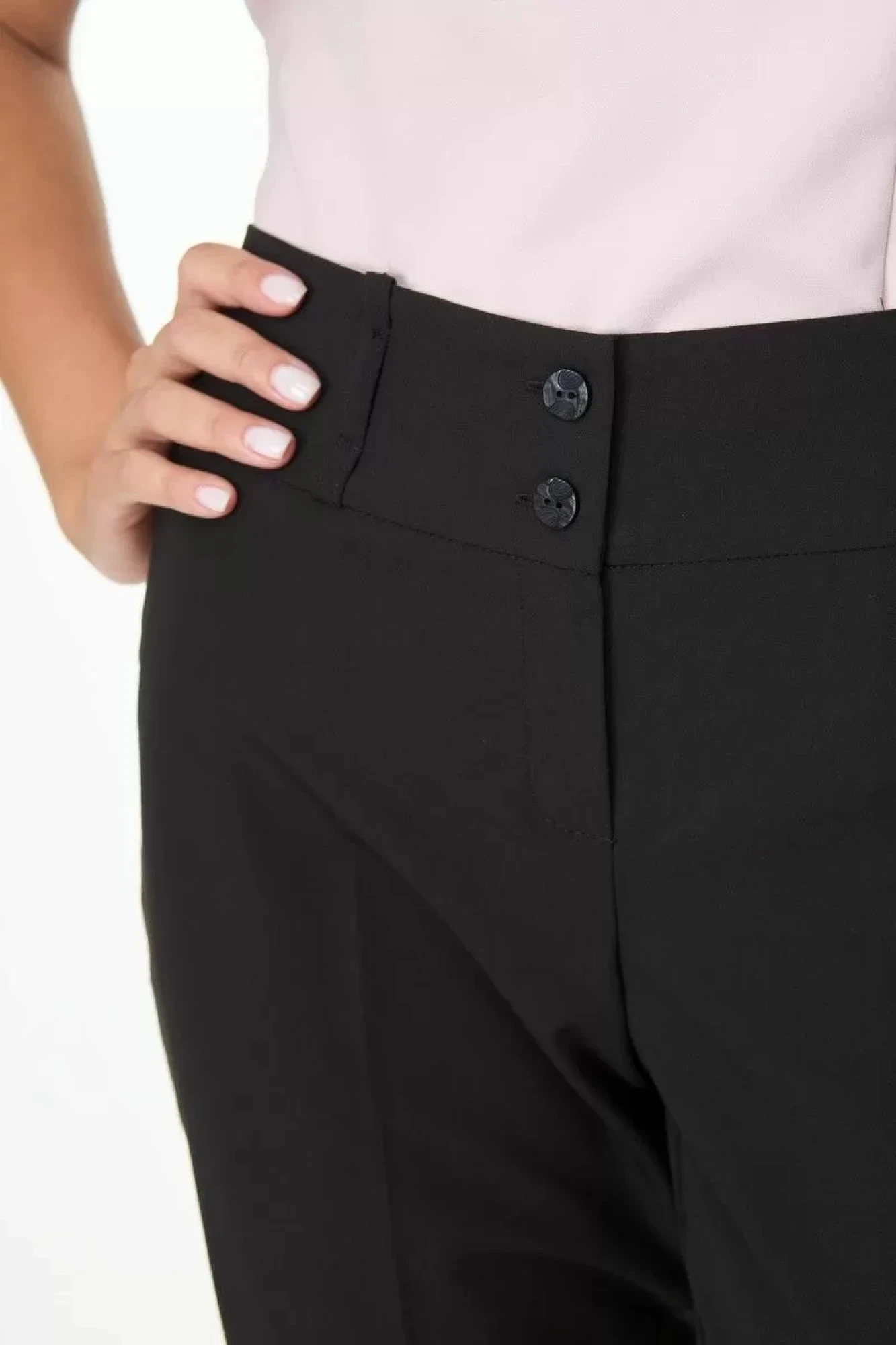 На передних половинках имитация боковых карманов делает силуэт стройнее; по низу в боковых швах разрезы.