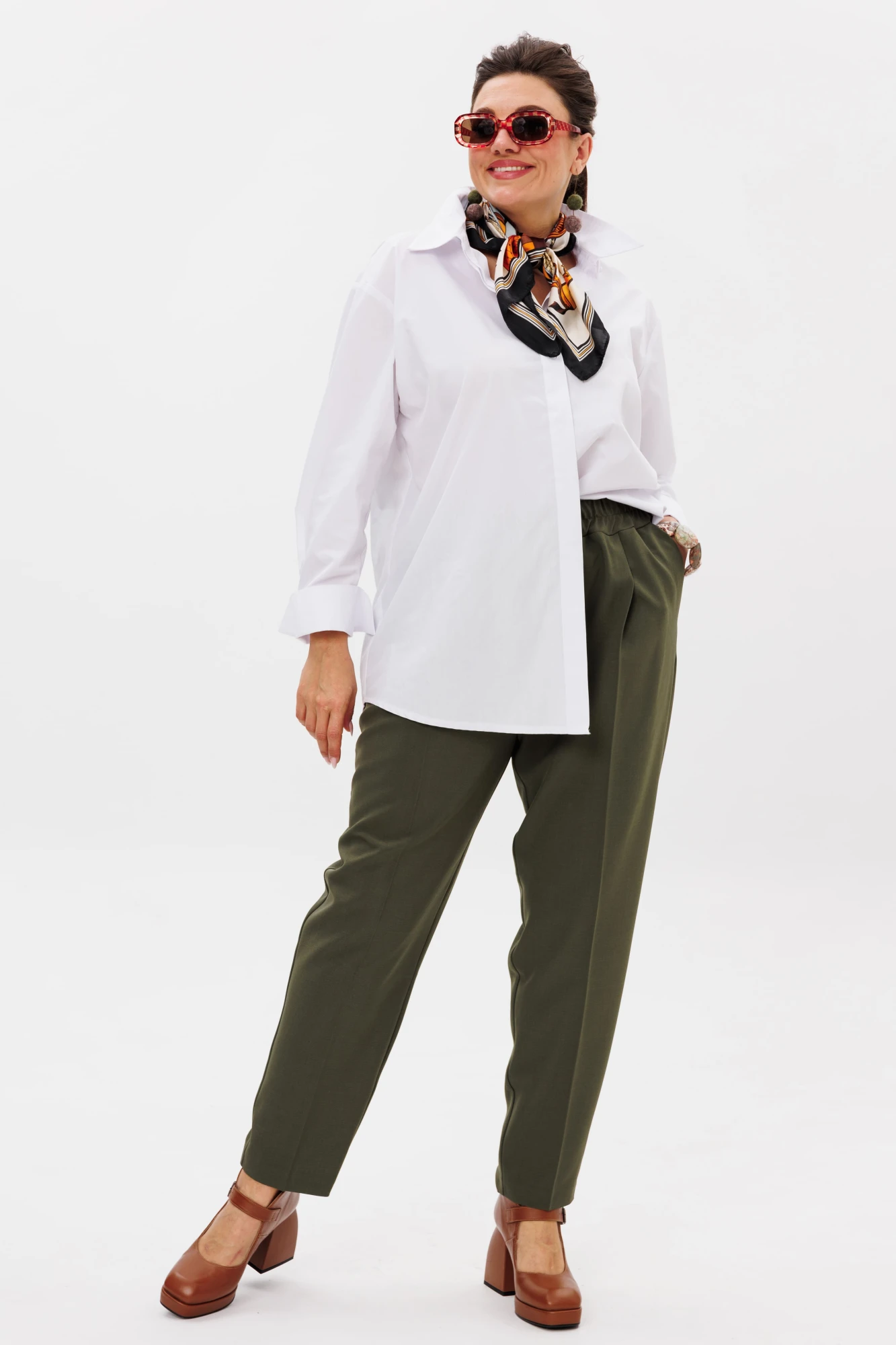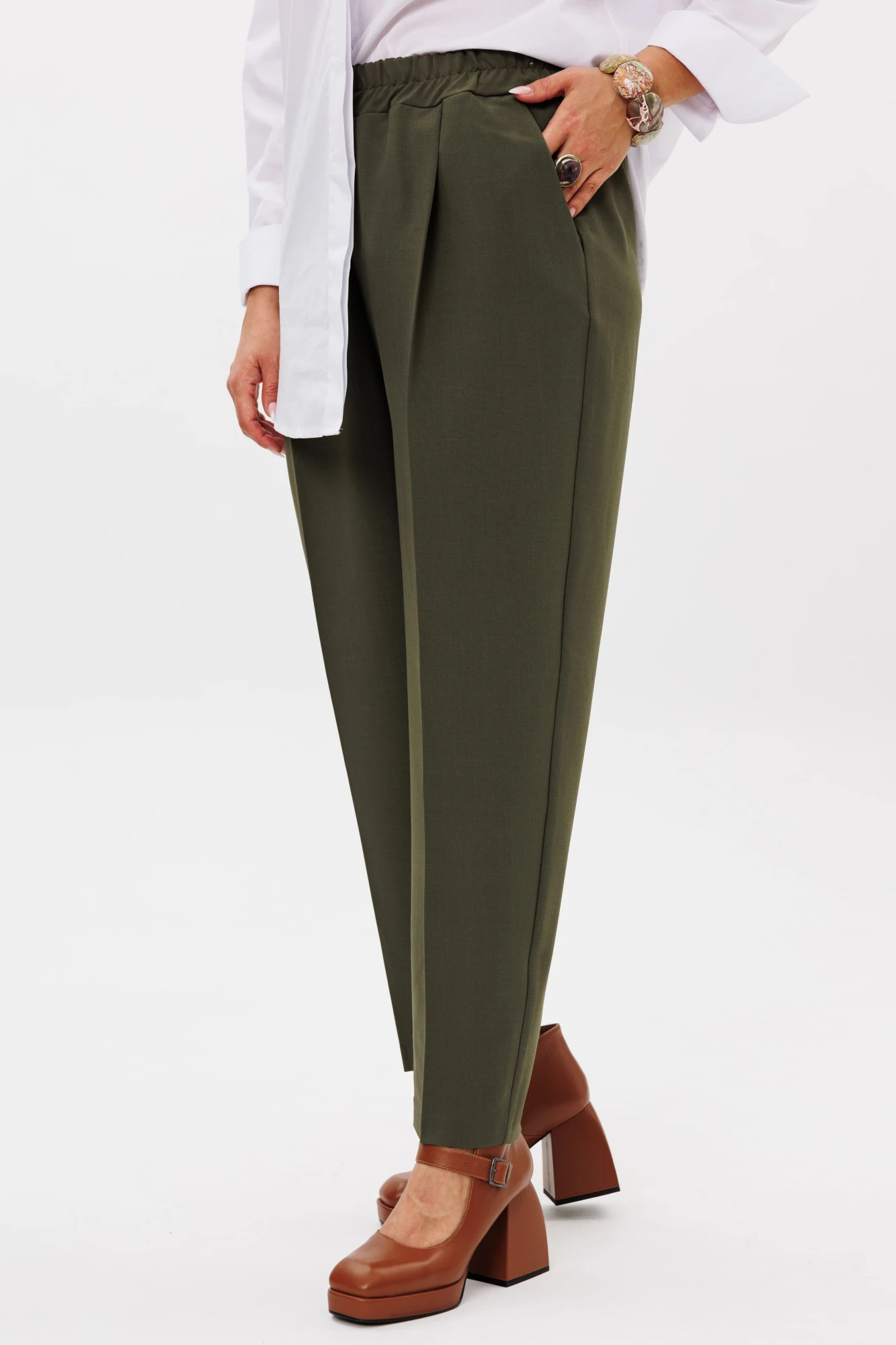 Притачной пояс с резинкой обеспечивает идеальную посадку и комфорт в течение всего дня, позволяя вам свободно двигаться и чувствовать себя уверенно в любой ситуации. Эти брюки легко комбинируются с различными топами и обувью, что делает их отличным выбором для создания разнообразных образов – от casual до business casual.