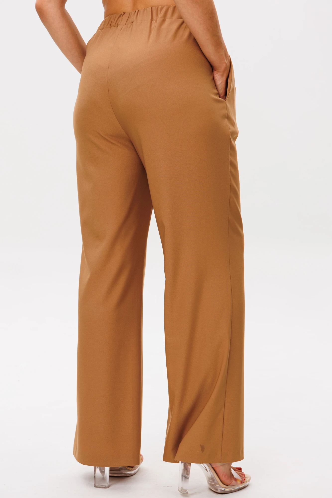 44, 46 , 48 , 50 , 52 ,54, 56 , 58 , 60Идеальная посадка на резинке обеспечивает идеальное прилегание без стеснения, а практичные карманы добавляют функциональности, сохраняя чистоту линий. Эти брюки легко становятся основой любого образа — будь то элегантный выход с каблуком, придающий лёгкую женственность, или повседневный лук с балетками, подчёркивающий непринуждённую эстетику.