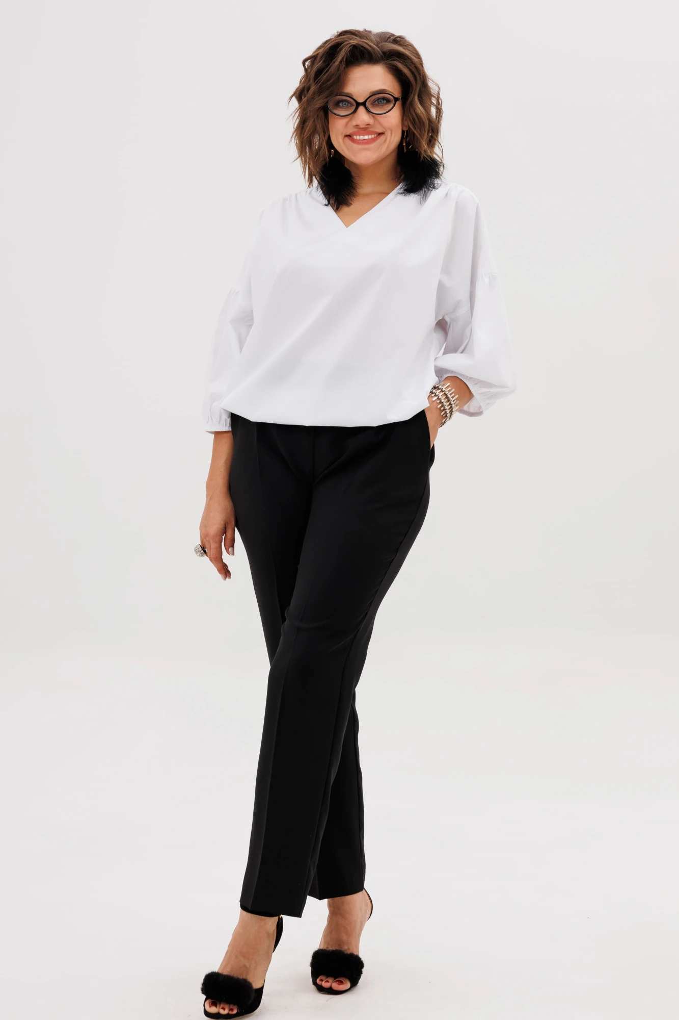 Наденьте их с классическим пиджаком 1470 для уверенности на важной встрече, сочетайте с объемным свитером и кроссовками для прогулки по городу или дополните шелковым топом 1440 и каблуками для создания эффектного вечернего лука.