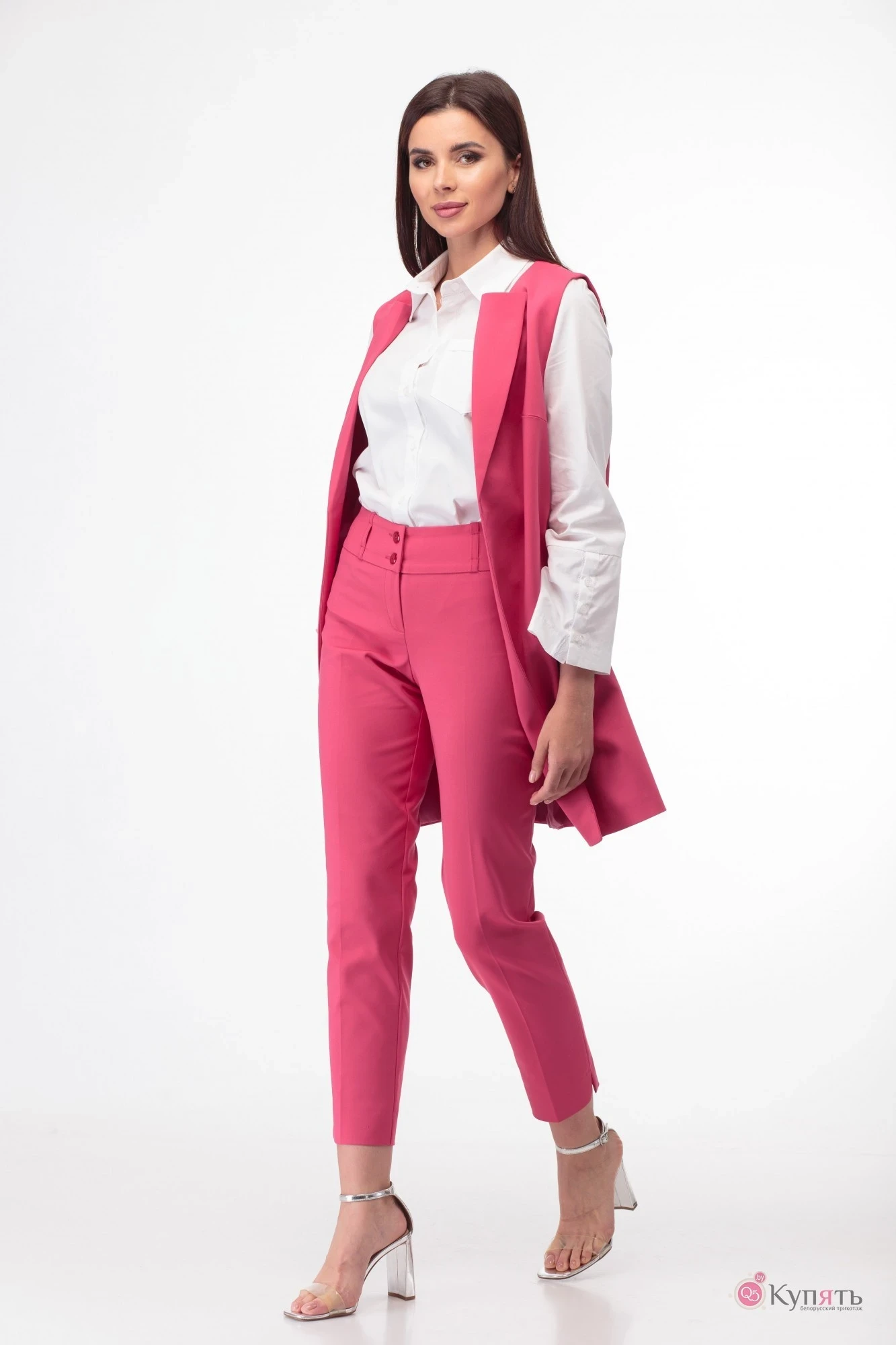 При съемке для образа использовались модели Anellistyle – 291 жилет розовых тонов и 751 блуза белого цвета.