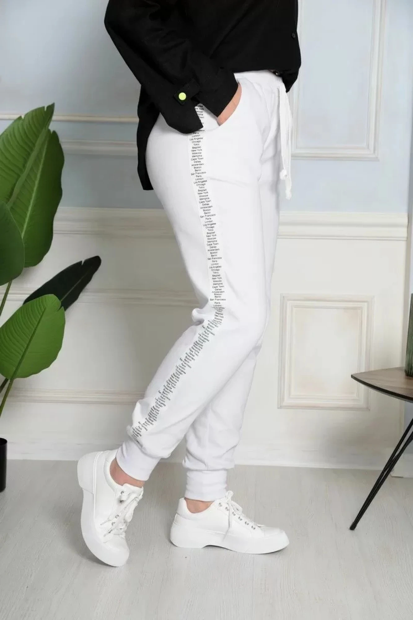 50,52,54,56,58,60,62Отрезная кокетка на задней части брюк делает их посадку идеальной. Все манжеты обработаны хлопковым трикотажным полотном с фактурой в стиле «Английской резинки».