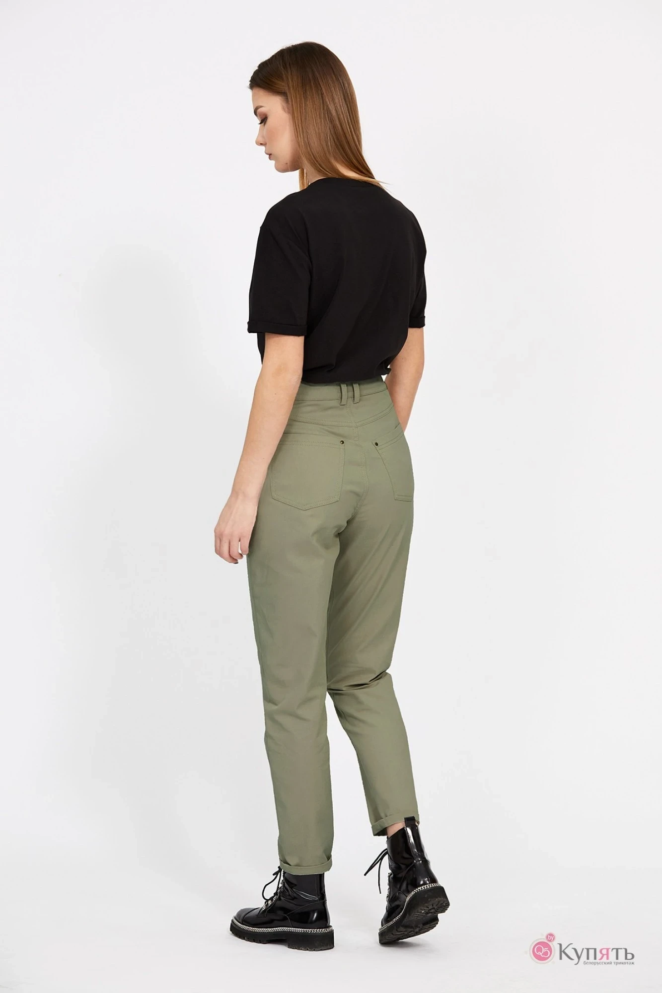 Брюки выполнены из джинса. На поясе со шлевками, с застежкой спереди на металическую молнию и металлическую пуговицу. Спереди фигурные карманы в боковых швах, сзади накладные карманы.