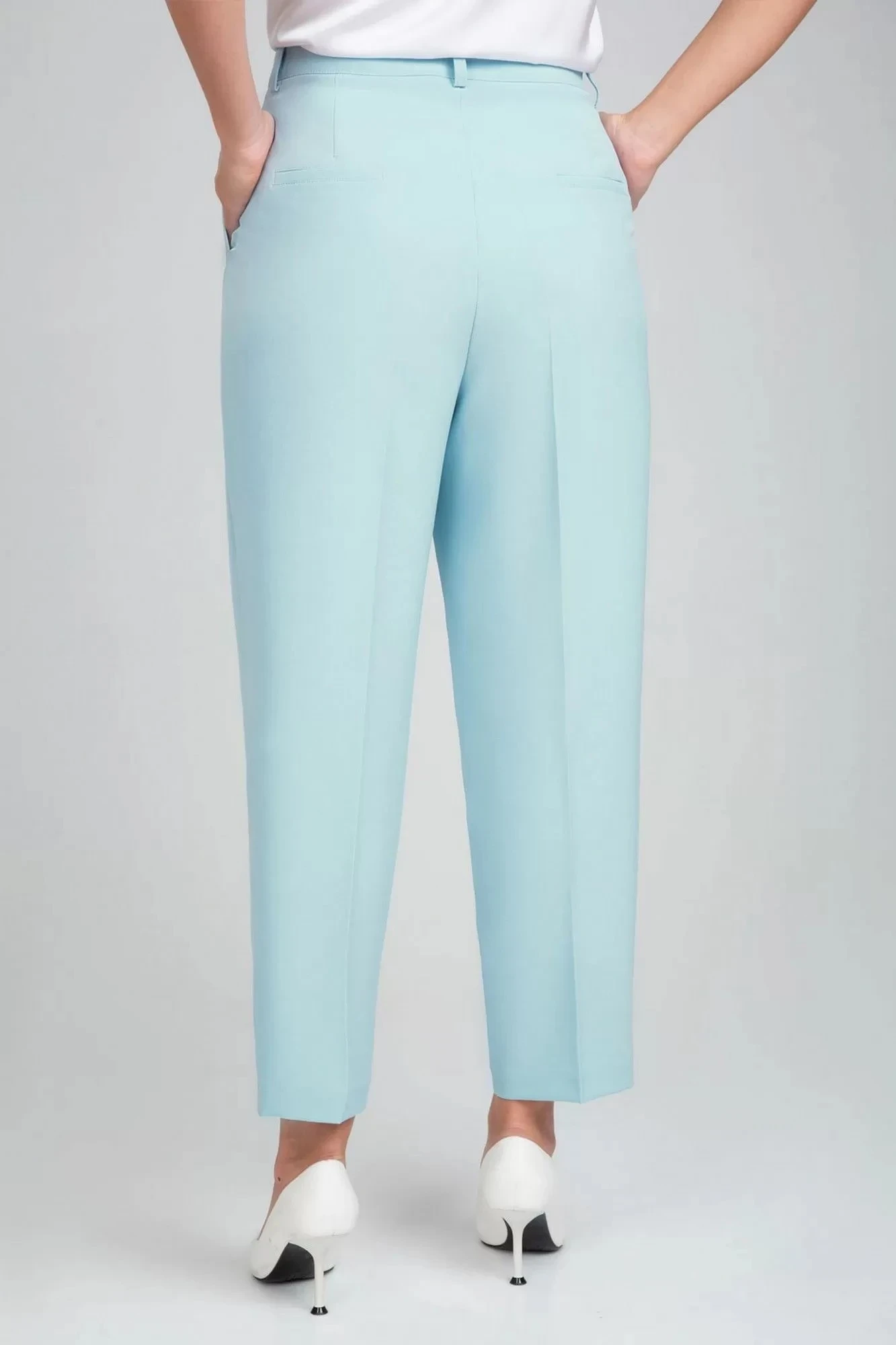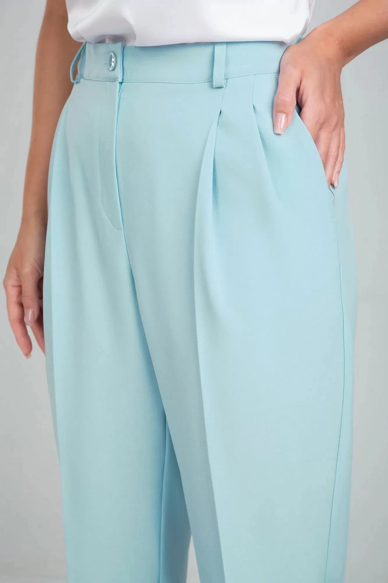46,48, 50 , 52Высокая посадка на талии, притачной пояс со шлевками. Застежка на молнию и пуговицу.
