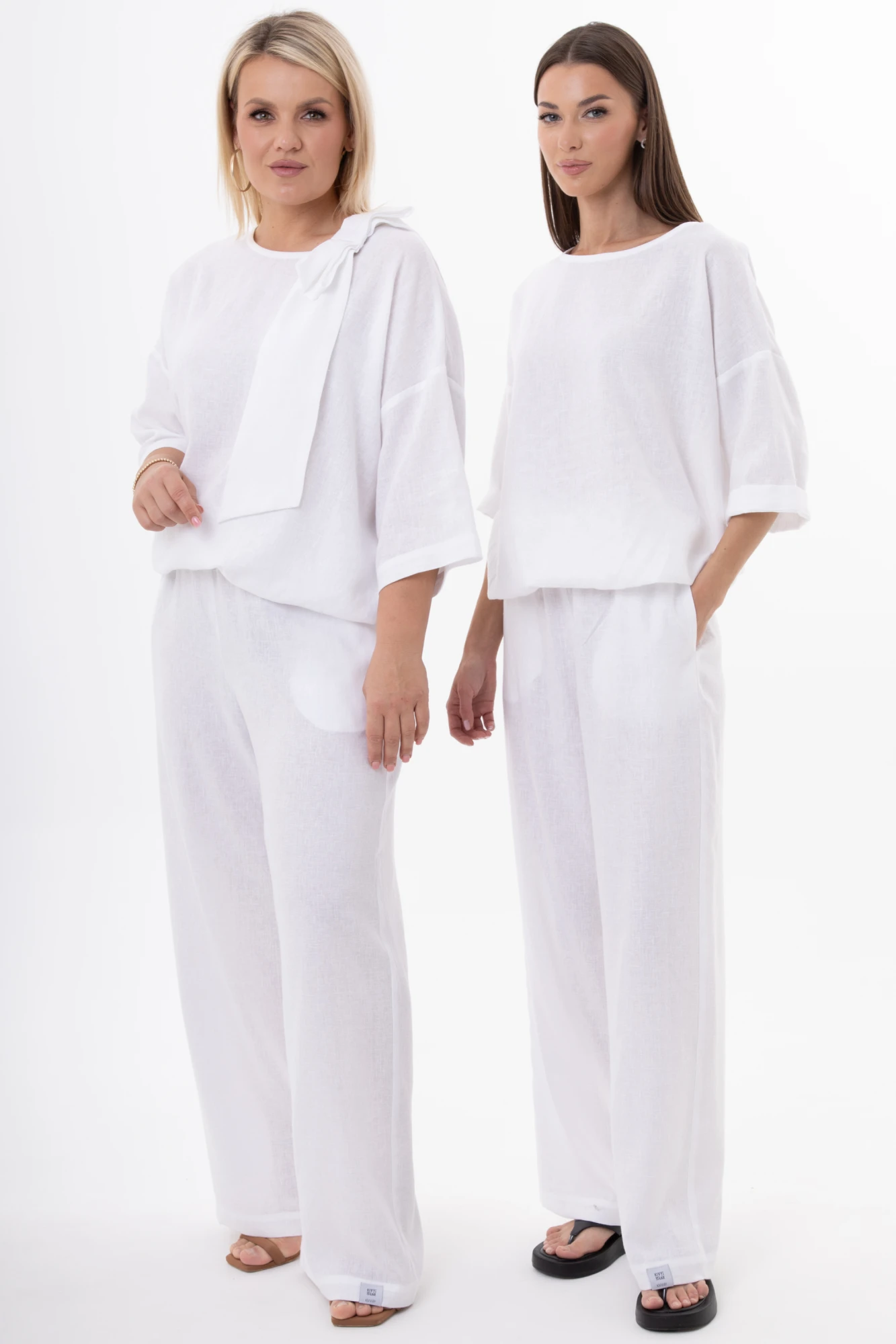 Универсальный дизайн подходит для офиса, прогулок или путешествий, легко комбинируется с базовыми футболками, рубашками и объемными кардиганами. Выбирайте брюки из льна с вискозой — ваш надежный спутник в мире современной моды, где ценится экологичность, комфорт и безупречное европейское качество.