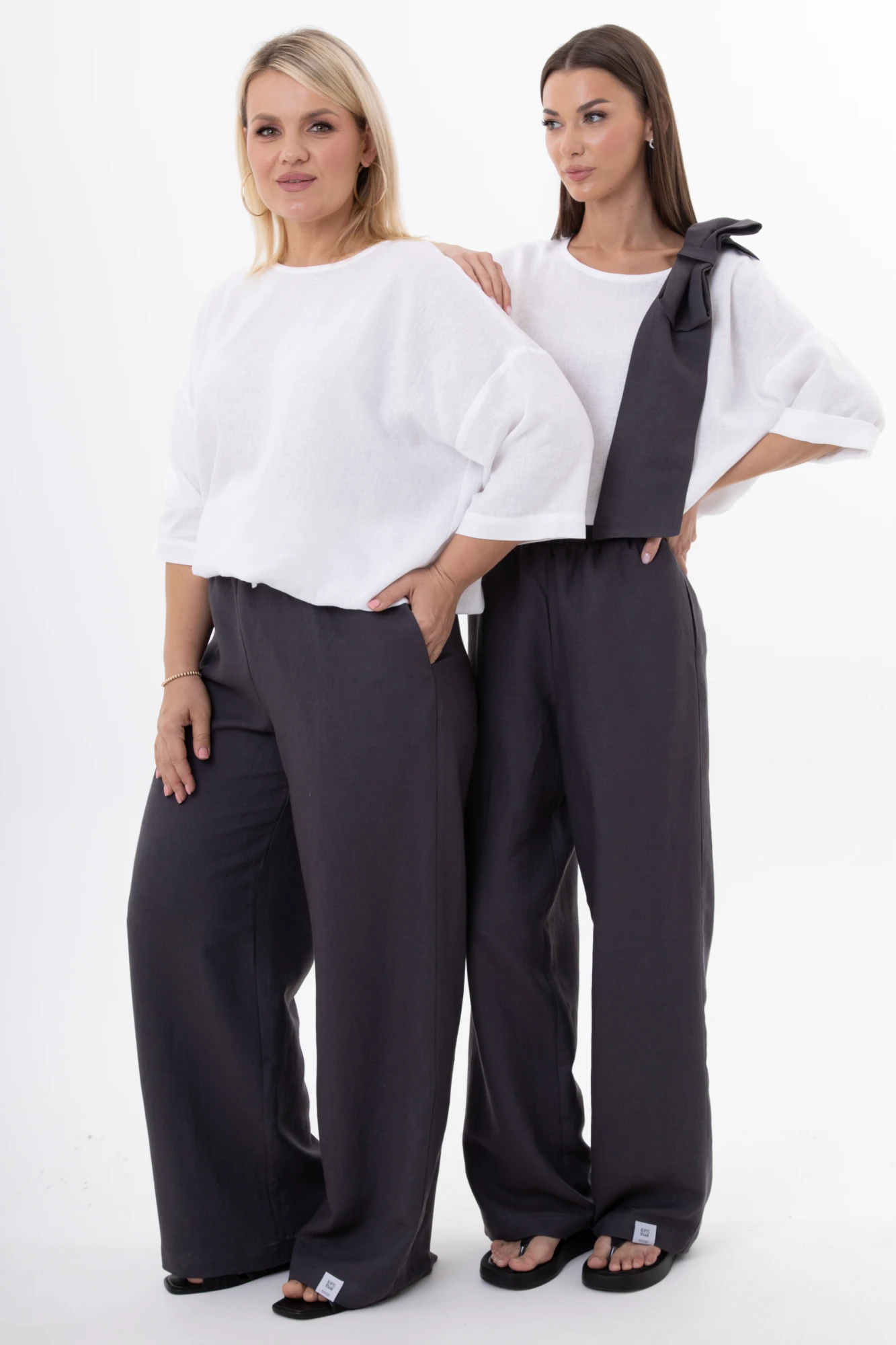 Универсальный дизайн подходит для офиса, прогулок или путешествий, легко комбинируется с базовыми футболками, рубашками и объемными кардиганами. Выбирайте брюки из льна с вискозой — ваш надежный спутник в мире современной моды, где ценится экологичность, комфорт и безупречное европейское качество.