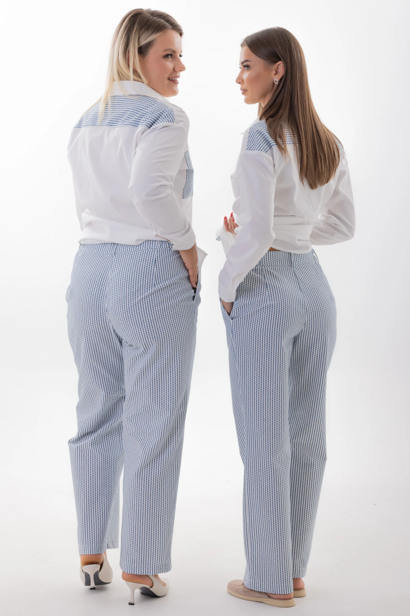 Изготовленные из костюмной ткани с добавлением эластана, эти брюки сочетают износостойкость, легкость и способность сохранять форму даже при активной носке. Мягкая текстура материала обеспечивает свободу движений, делая их подходящими как для офиса, так и для мероприятий. Заутюженные стрелки визуально удлиняют ноги, а прямой крой скрывает недостатки фигуры, создавая эффект стройности.